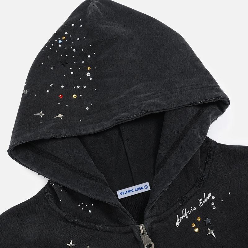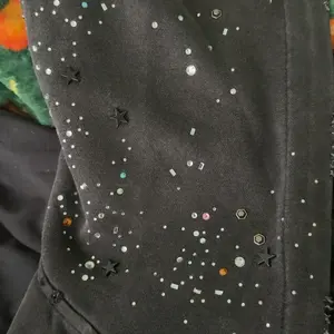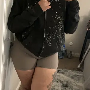 Love this hoodie!! The stones shine bright and really noticeable if you like to stand out!! Nice oversized fit!!