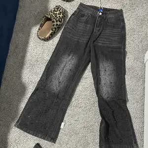 Add some sparkle to your wardrobe with Aelfric Eden Rhinestone Baggy Jeans. The long and relaxed fit adds a cool and edgy look, while the rhinestone embellishments provide a touch of glamour. You'll look stylish and stand out from the crowd in these one-of-a-kind jeans.