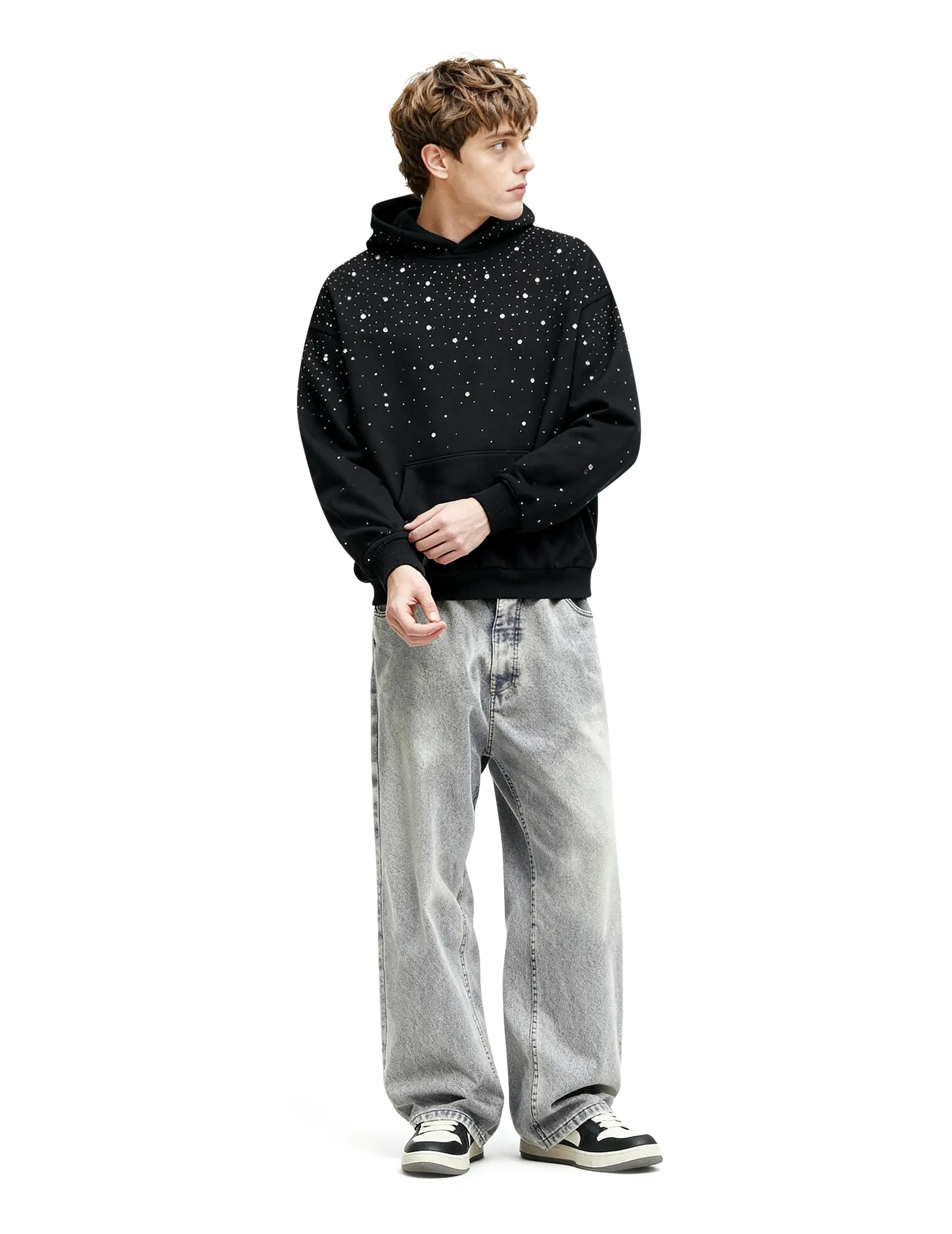 This hoodie is absolutely amazing! It’s incredibly soft, and the studs are all securely sewn in. It’s super warm.
