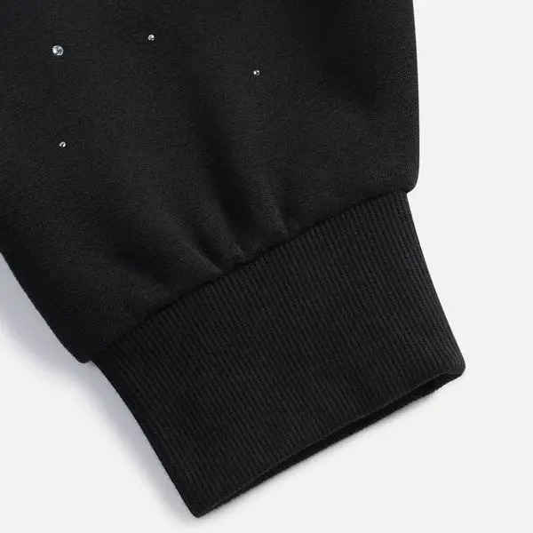 This sweater is amazing, great quality, the rhinestones are very shiny, it’s very comfortable. Only downside for me is the inside, it’s a strange material but it’s okay! Also got a M & it fits like a large a bit. Overall, great hoodie & very worth it