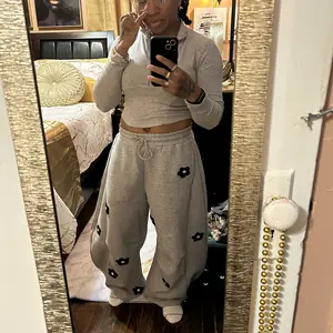 Aelfric Eden Unisex Floral Towel Embroidery Baggy Barrel Sweatpants