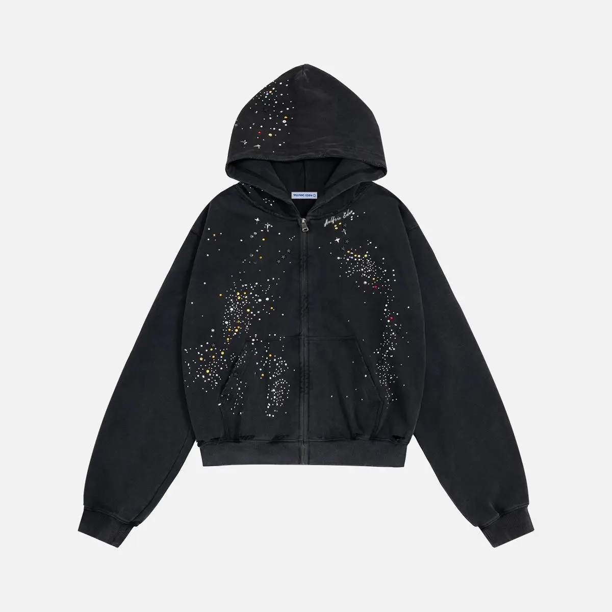 Absolutely gorgeous and worth the hype. It’s not a fluffy cloud fabric. It’s more structured, almost like a very soft denim jacket. I love it. The rhinestones are so cute and the hoodie is big. Great quality. It’s very oversized, so when in doubt size down! I’m usually a M in tops and it’s huge