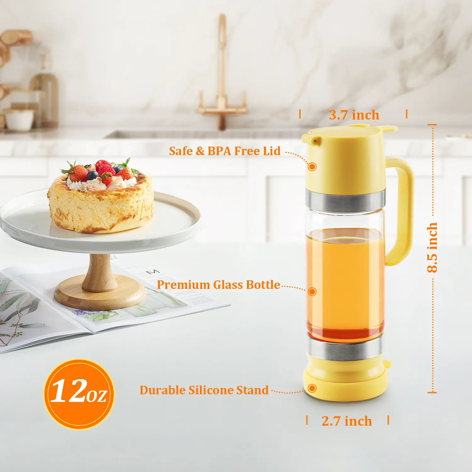 Great quality. No spill design. My husband uses honey every day in his coffee and this is the first mess free dispenser I've found. It comes with a silicone cover for the bottom to keep the counter clean and the germs off the dispenser.