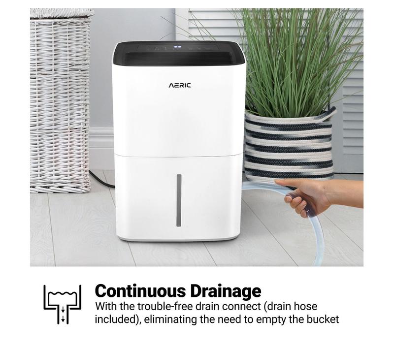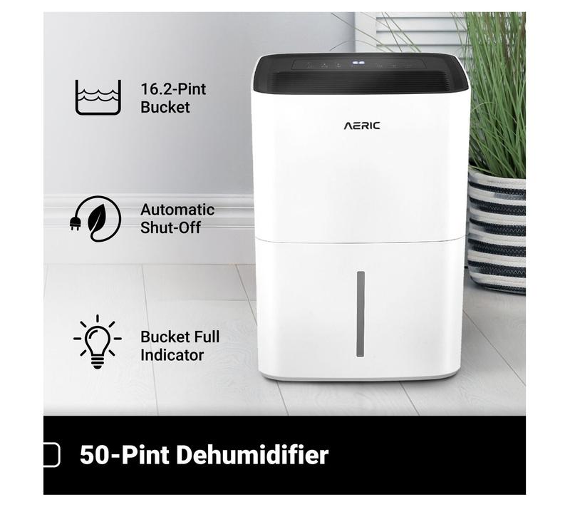 Tackle excess moisture in spaces large and small with the Aeric 50-pint dehumidifier. Featuring a modern look and built-in pump drainage, it helps protect your home from dampness -- whether you're caring for your basement, garage, or living room. Use its simple digital controls to set your humidity preferences and enjoy fresher air day after day. From Aeric.
