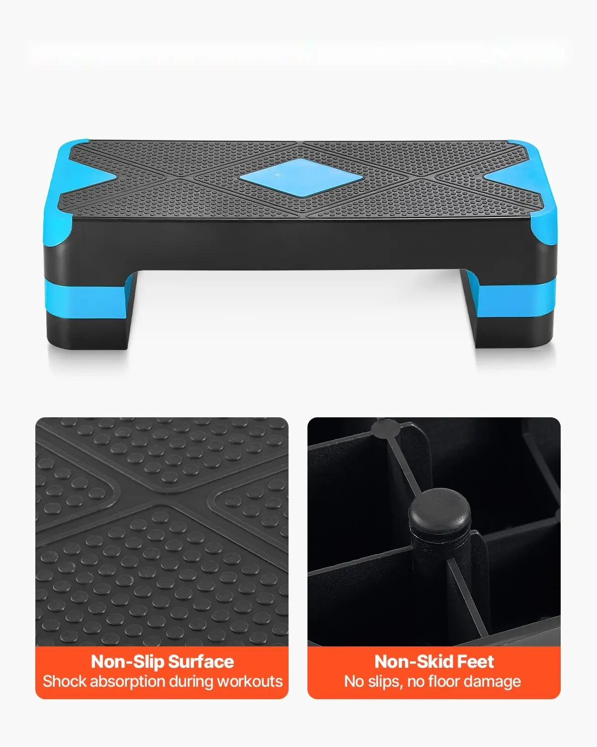 ·3 Adjustable Heights: This aerobic exercise step platform includes a 27x10.5 in wide platform with 4 risers. You can intensify workouts by adjusting height from 4in to 8in. Suitable for all ages and fitness levels, from beginners to advanced athletes
