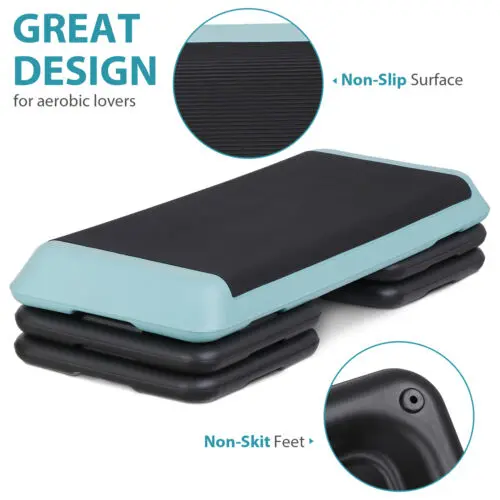 Platform textured surface is secure, non-stick, non-slip, and shock absorbing, ensure you exercise easily and safely. Also comes with four nonskid feet on each riser to prevent it from sliding during exercise and scratching floors