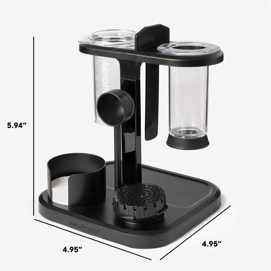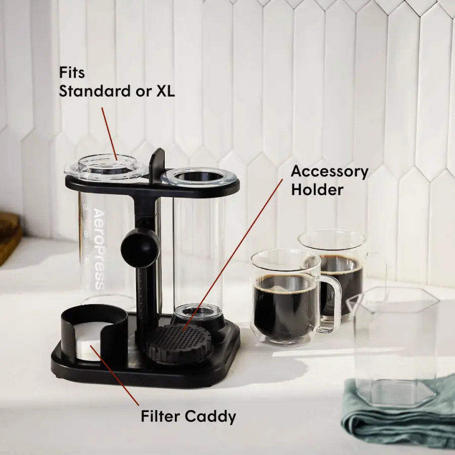 Love AeroPress! Have been using it for 5 years now and it makes the best cup of coffee I’ve ever had! I really like the look of clear AeroPress…very chic! The organizer stand keeps everything neat in a compact space on my counter. Very happy with the organizer!!