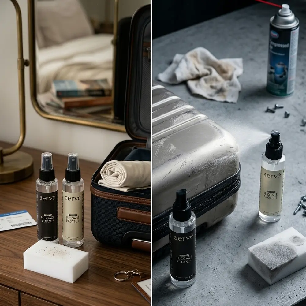 Experience effortless cleaning with the AERVÈ Jet Set Multi-Surface Cleaner & Protectant Kit, your complete solution for home, office, and travel cleaning. This all-purpose cleaner effectively removes dirt, grease, spills, stains, and fingerprints from countertops, bathroom tiles, glass surfaces, appliances, furniture, and luggage. The included surface protectant helps prevent scratches, watermarks, residue buildup, and wear, maintaining a brilliant shine on aluminum, plastic, coated surfaces, and delicate finishes. Ideal for daily cleaning or deep cleaning sessions, this multi-surface kit also neutralizes unpleasant odors from food, pets, smoke, and travel, leaving rooms, workspaces, and luggage smelling fresh. The premium cleaning sponge ensures streak-free results without damaging surfaces. Perfect for any household, office, kitchen, bathroom, or travel scenario, it allows for efficient stain removal, surface protection, and odor elimination in one convenient kit. Whether you are cleaning kitchen counters, bathroom tiles, glass, furniture, appliances, or luggage exteriors, AERVÈ Jet Set provides professional-quality results at home or on the go. Safe, effective, and versatile, it is the perfect solution for families, offices, travelers, and anyone who values a clean, fresh, and polished environment. Add this multi-surface cleaner and protectant kit to your cleaning routine for spotless, odor-free, and protected surfaces every day.