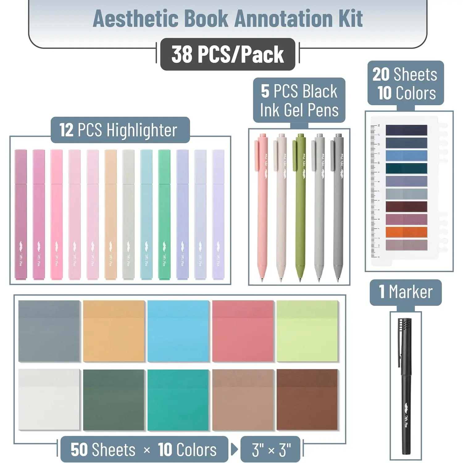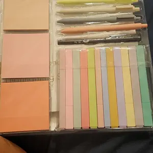 amazing products, only unfortunate thing is i thought the pens were multicolored but they’re all one color 🥲. marker is meant for the sticky notes as well, not the pens!!