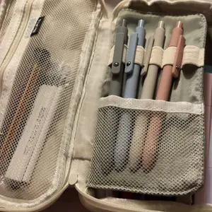Super cute. I love how you can make the bag bigger if you need any more room. Great price for everything that it contains. The highlighters are not so pigmented so I did buy other ones from sharpie. Very nice and the material does not seem cheap.