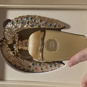 At its heart, an enchanting bouquet of jasmine, orange flower, and tuberose adds depth and floral elegance. The fragrance settles into a warm, inviting base of sandalwood, amber, praline, and patchouli, leaving a memorable, sophisticated trail suitable for any occasion.