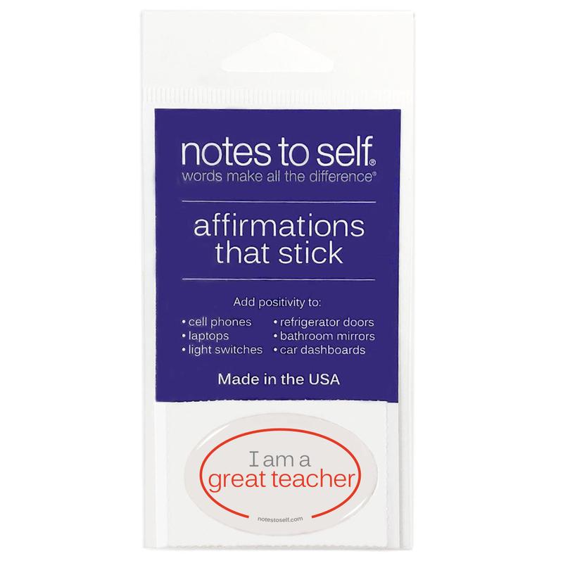 Includes one I am a great teacher™ notes to self™ positive affirmation dome decal. White sticker with red words.