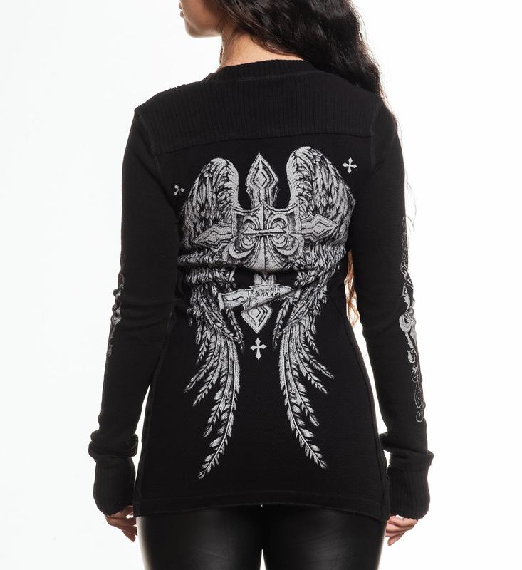 5. Affliction Women's Thermal Shirt Simulation Wings