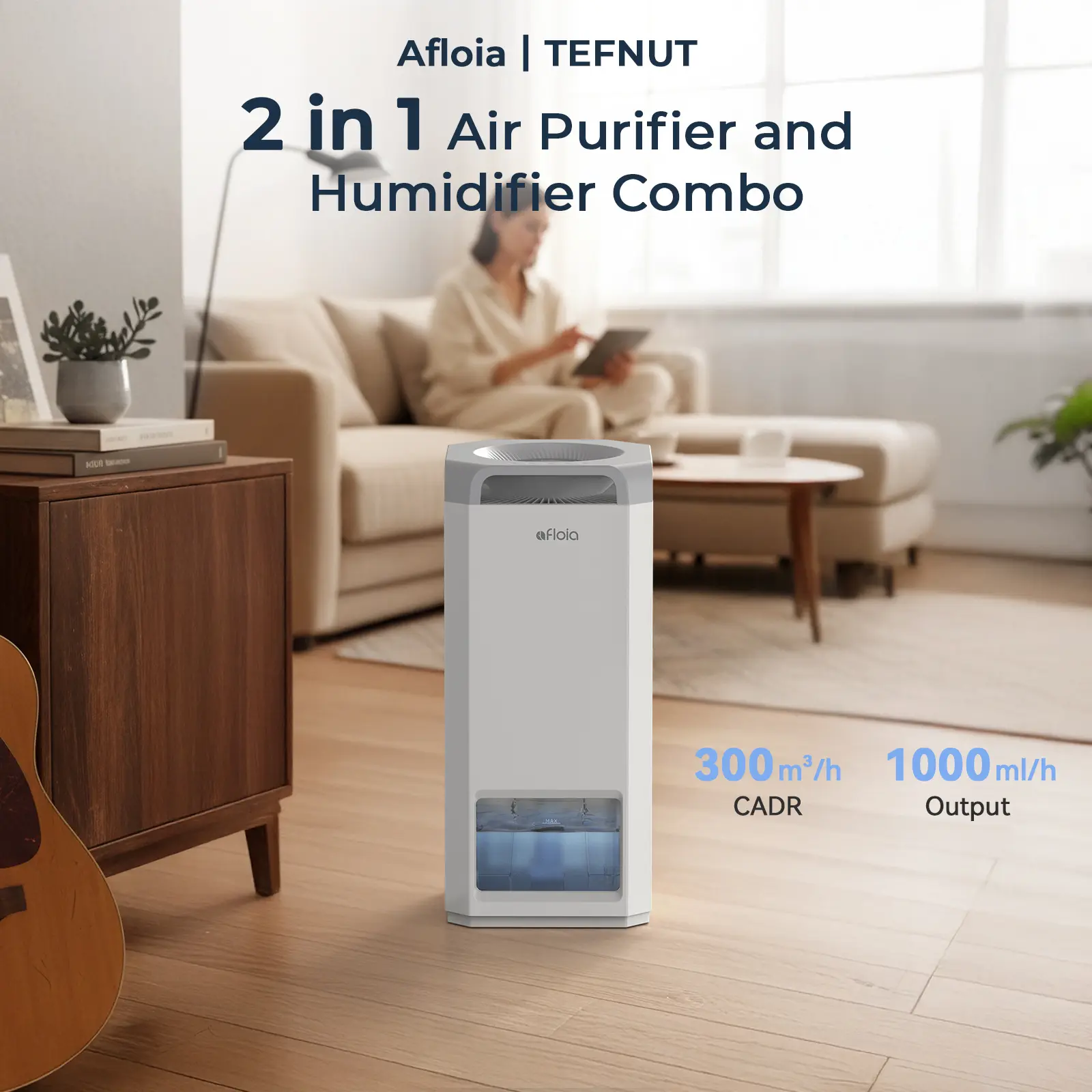 ·2-in-1 Humidifier&Air Purifier : This air purifier and humidifier combo delivers 300m³/h CADR purification and 1000ml/h humidification. Effortlessly switch between standalone purification or combined mode to fit your space. Perfect for families, pet owners, allergy sufferers—ideal for bedrooms, living rooms, offices, and large rooms.