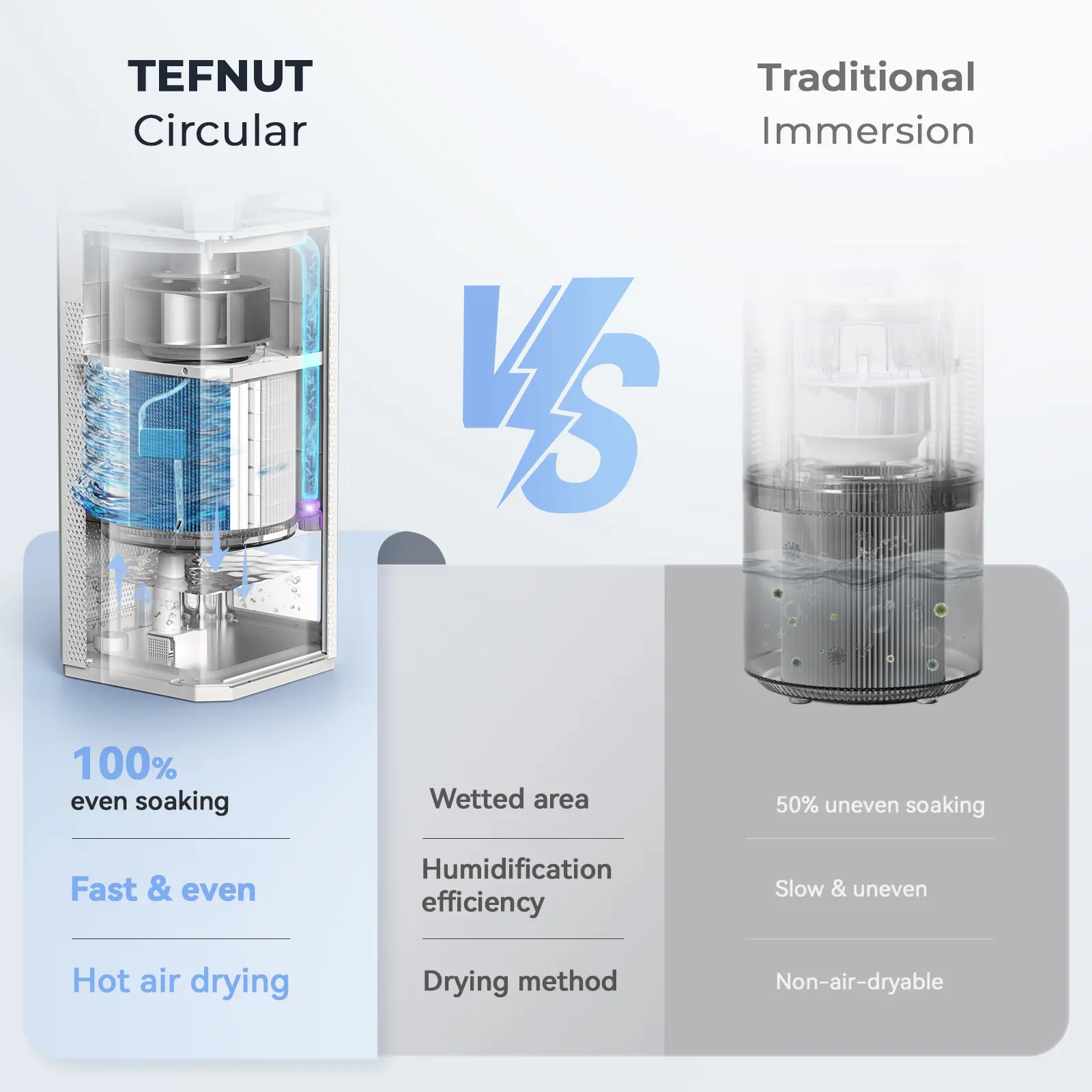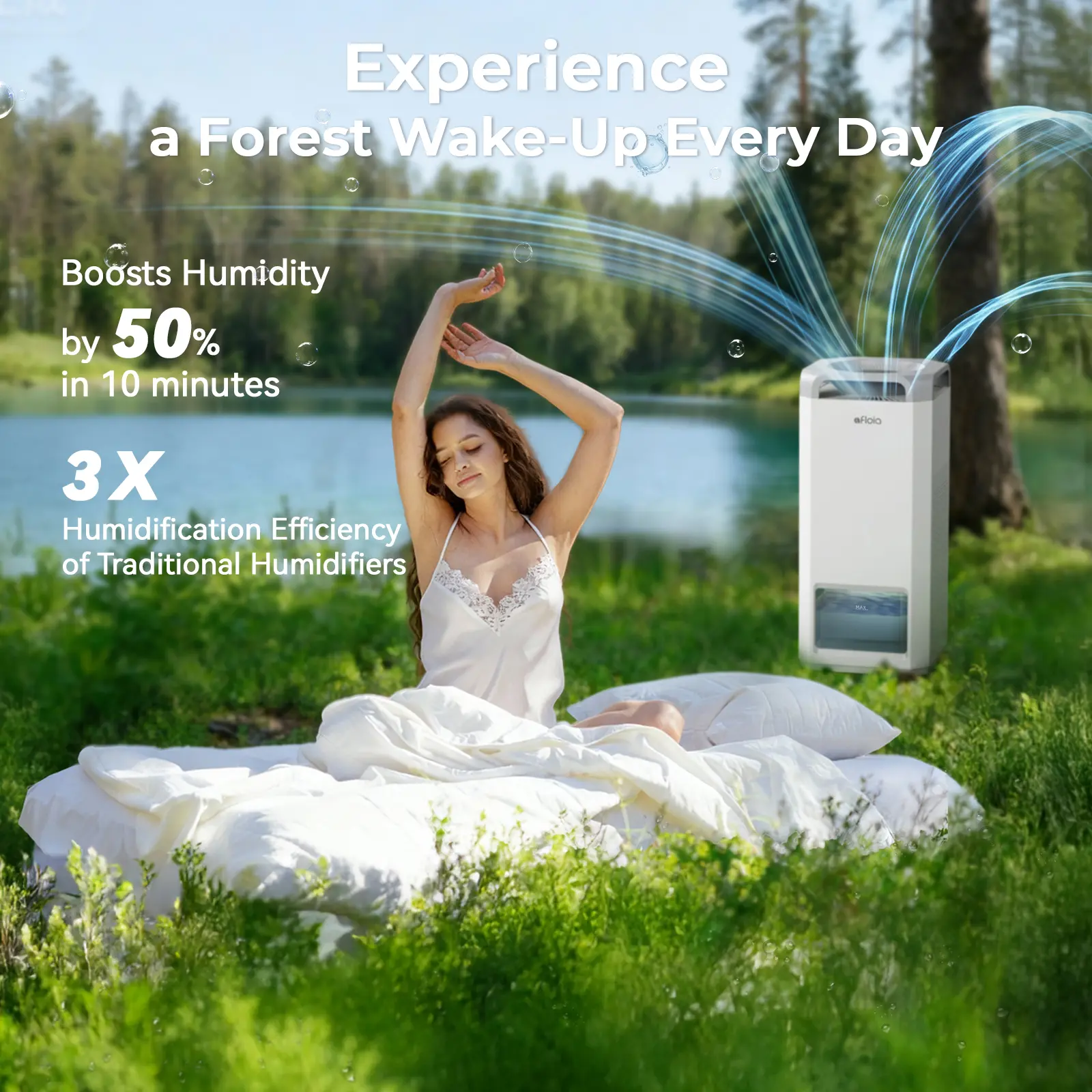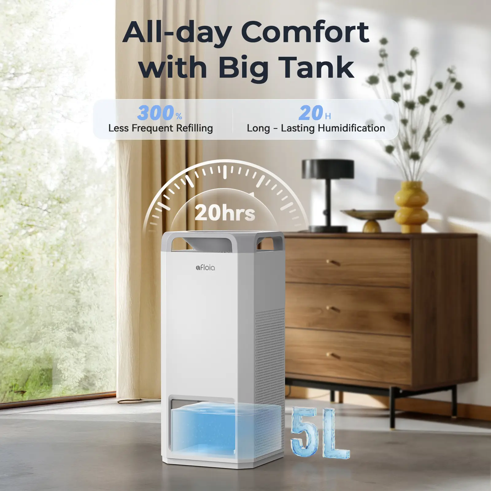 ·High-Capacity Humidification: 5L tank with 1000ml/h output for long-lasting moisture, reducing frequent refills. Top-fill design enables quick, spill-free refills with no bending or mess. Cold mist evaporation delivers ultra-even, "mist-free" humidification to avoid wet floors, keeping air hydrated for skin, sinuses, and plants.