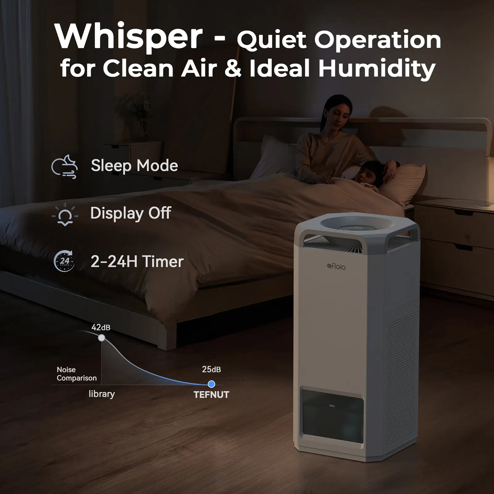 ·Quiet Operation & Timers: Sleep mode runs below 25dB for whisper-quiet nights, perfect for bedrooms and nurseries. Choose 2/4/8/16/24-hour timers to match your schedule—saving energy while keeping your space fresh exactly when you need it.