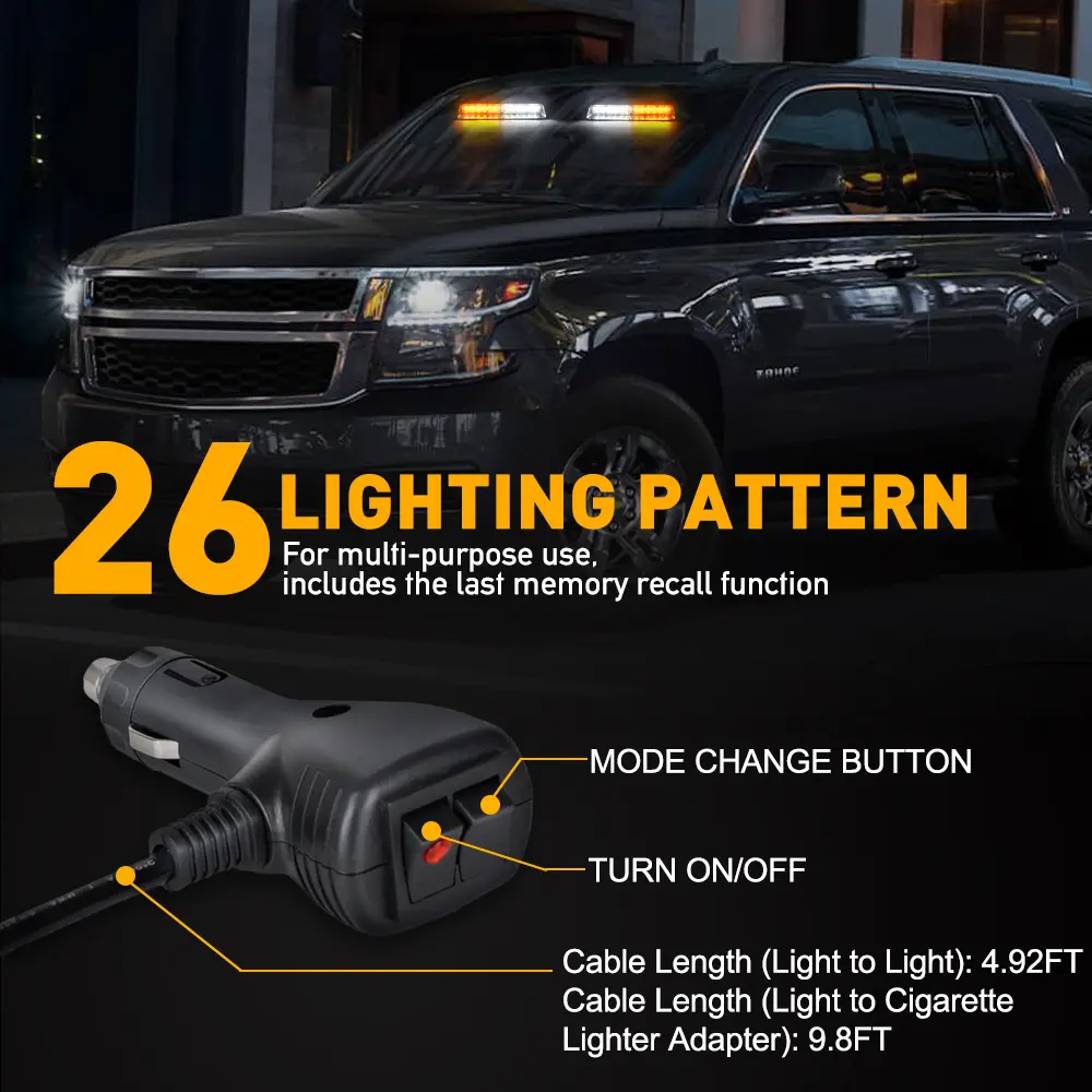·HIGH-INTENSITY LED: This AFML windshield emergency lights comes equipped with 16 High-Intensity LEDs will ensure your vehicle can’t be missed day or night. Use in fog, rainy, snowy and mud wind season ideal and emergency situations.