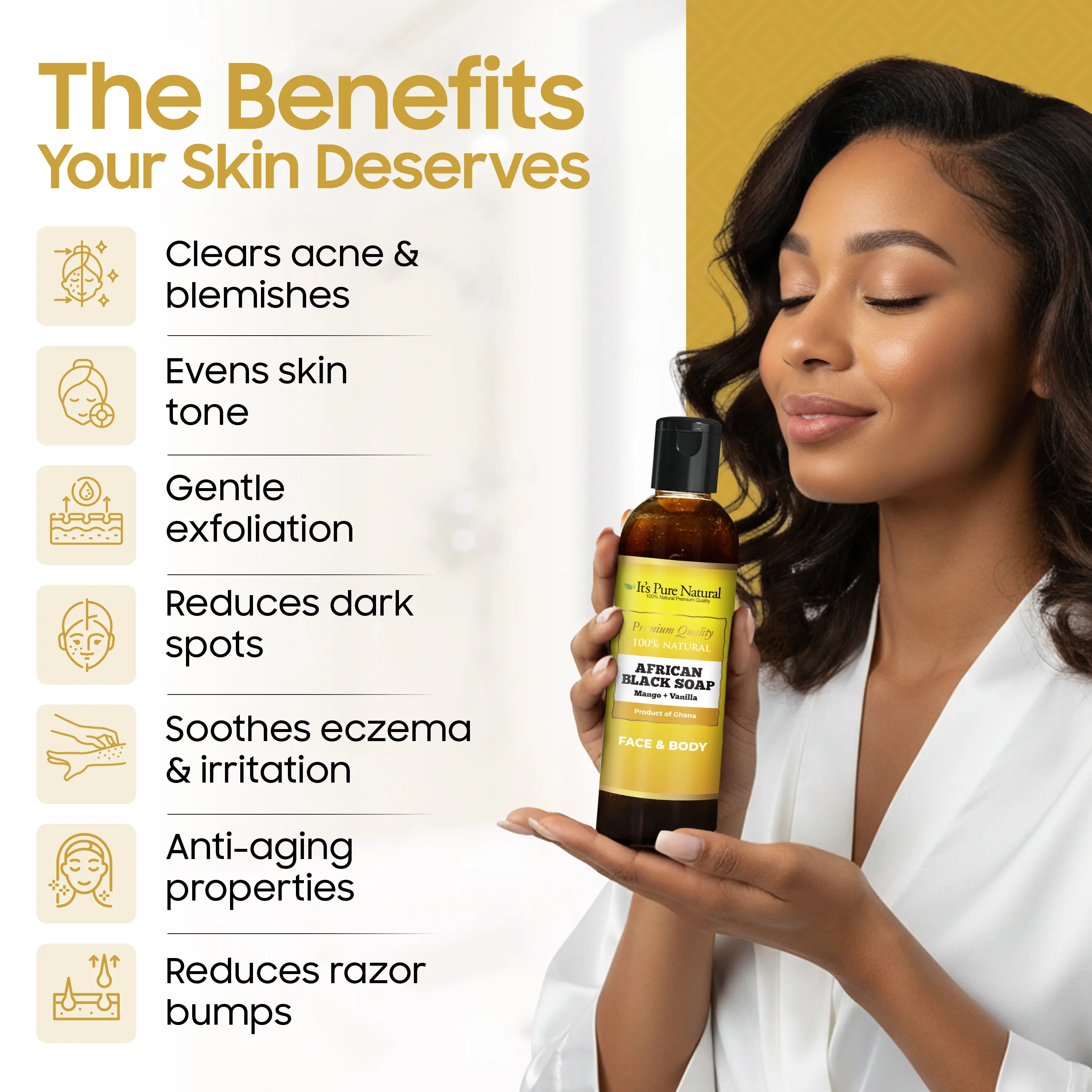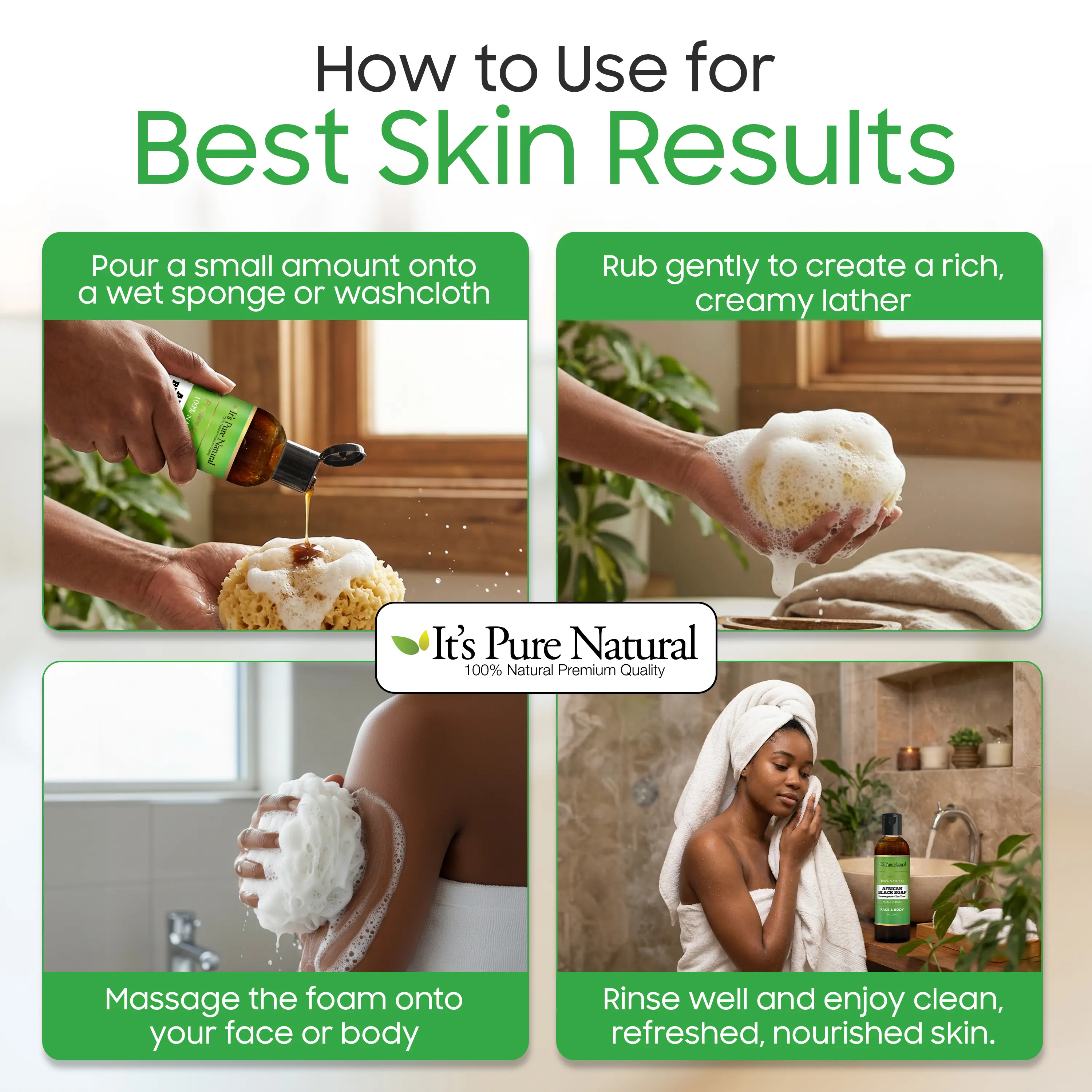 With its rich, dark appearance and creamy lather, this liquid African Black Soap is a versatile essential for face and body care. Designed for everyday use, it helps keep skin feeling clean, smooth, and refreshed—without harsh chemicals.