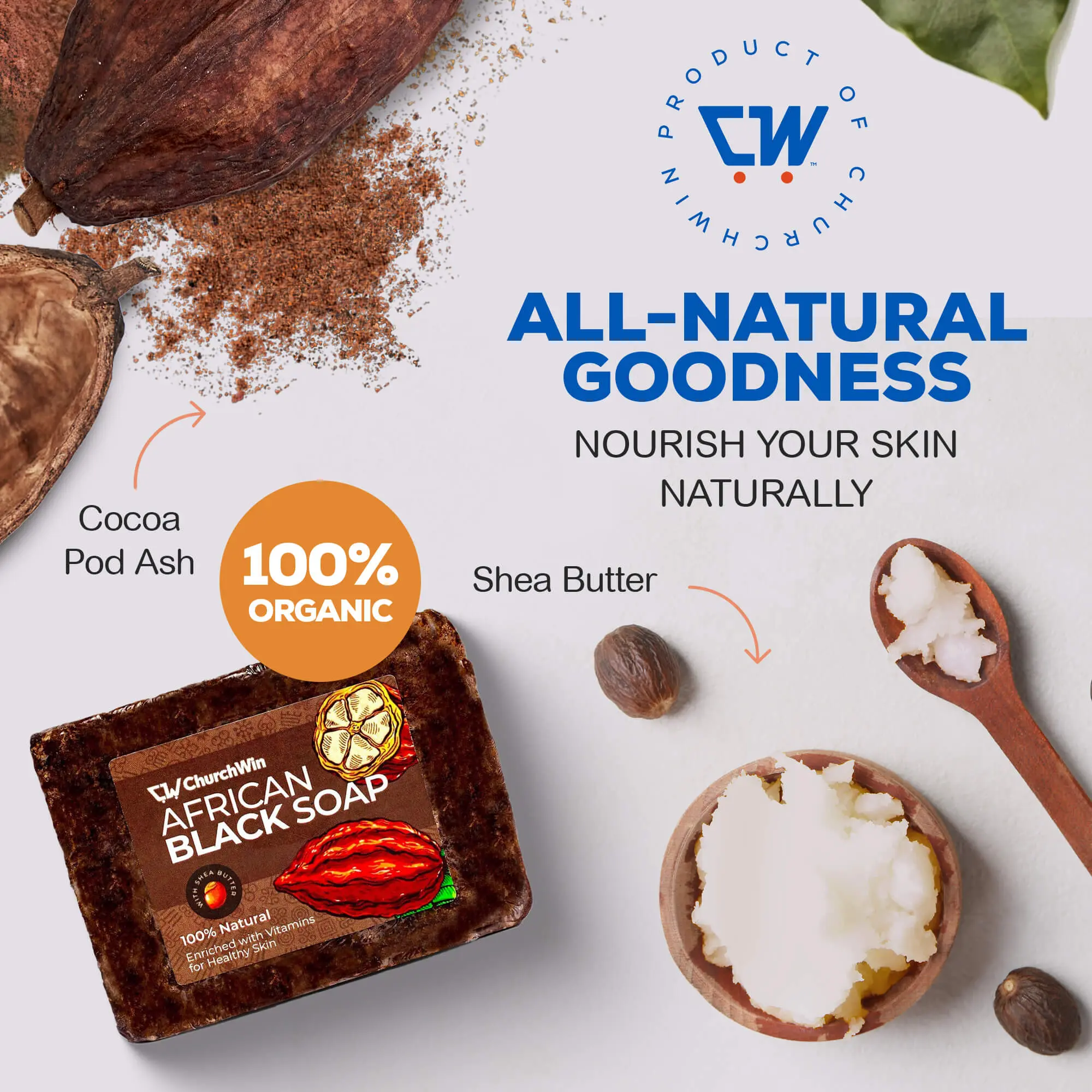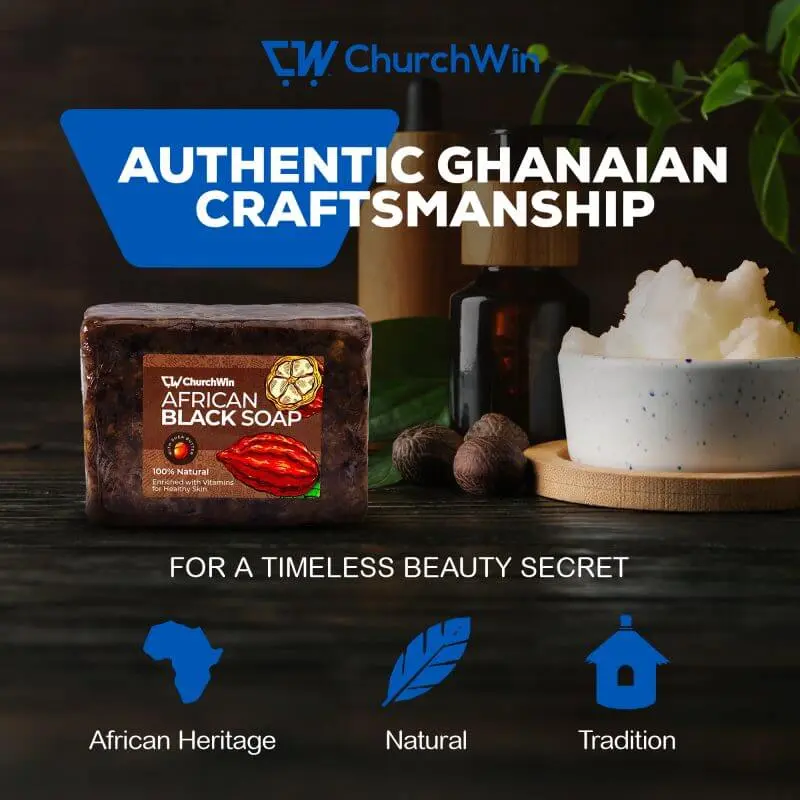 Elevate your skincare routine with ChurchWin African Black Soap, a natural and effective product designed to nourish and cleanse your skin.