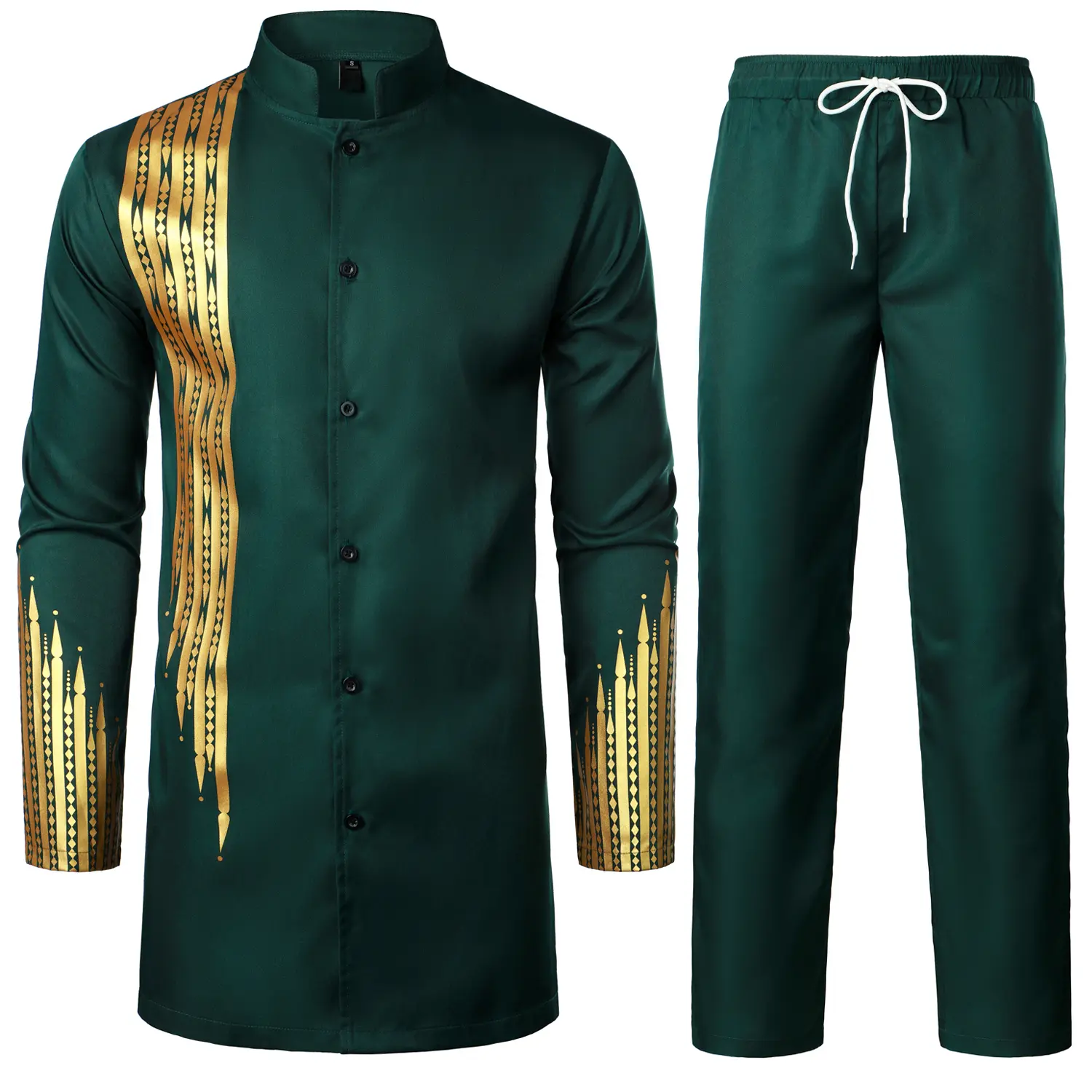 ZEROYAA Men's Traditional Suit Long Sleeve Button up African Dashiki Shirt and Pants Ethnic 2 Piece Outfit Clothes Cotton sets for men clothing men's 2 piece set Cardigan Breathable