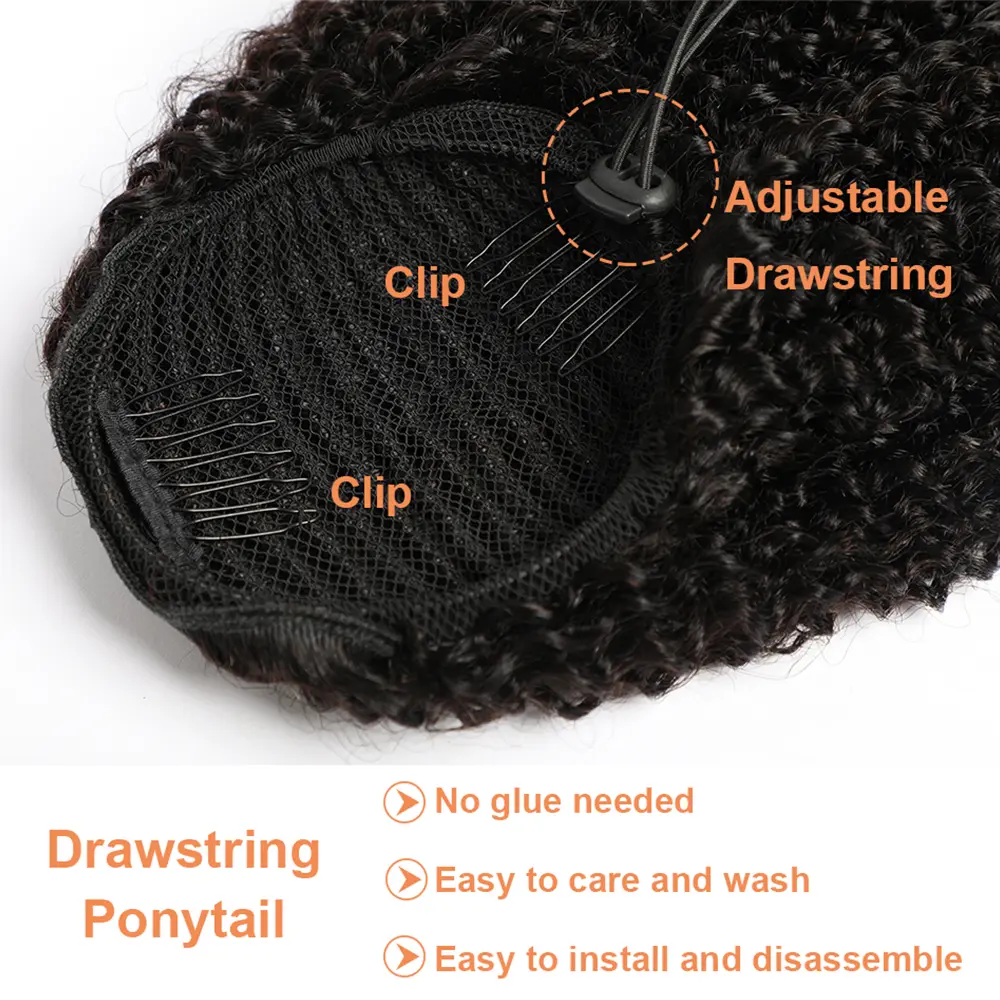 ·Advantages of the HLSK Drawstring Ponytail?This afro kinky-curly drawstring ponytail for Black Women,it wears naturally, just like your own hair, adjustable drawstring can accommodate most thicknesses of buns, soft and silky, healthy, dyeable, easy to wear.