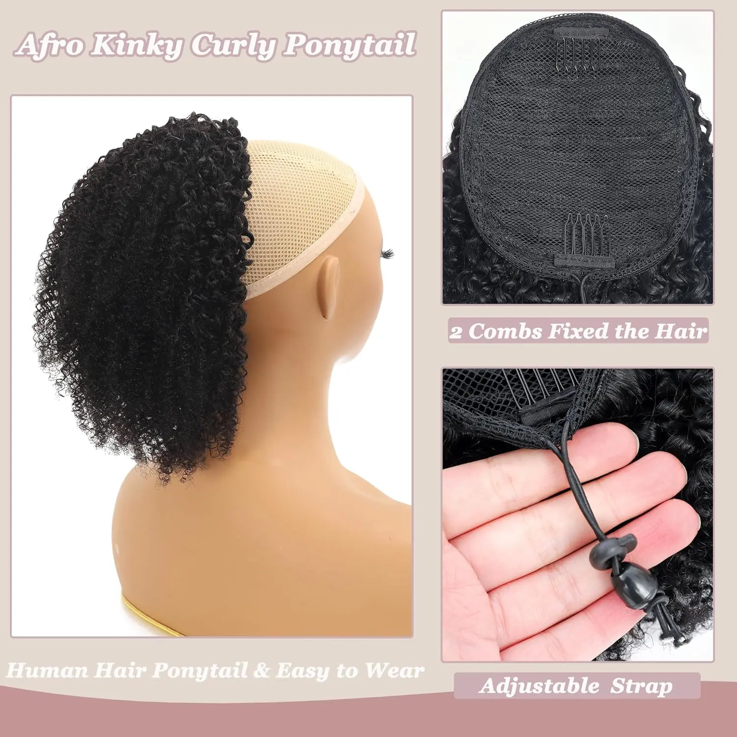·Is this curly drawstring ponytail made from human hair or synthetic hair?Our ponytails are made from 100% real human hair,Not mixed with any other non-human hair material.