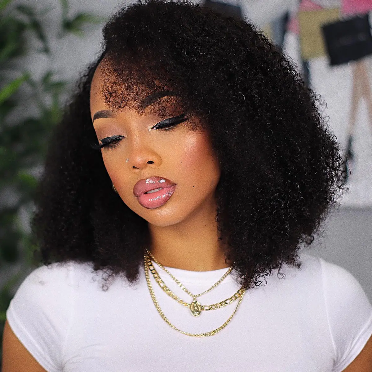 I am beyond impressed with this wig! The curls are bouncy, natural-looking, and volume. It was soft right out of the box and didn’t have any weird smell.