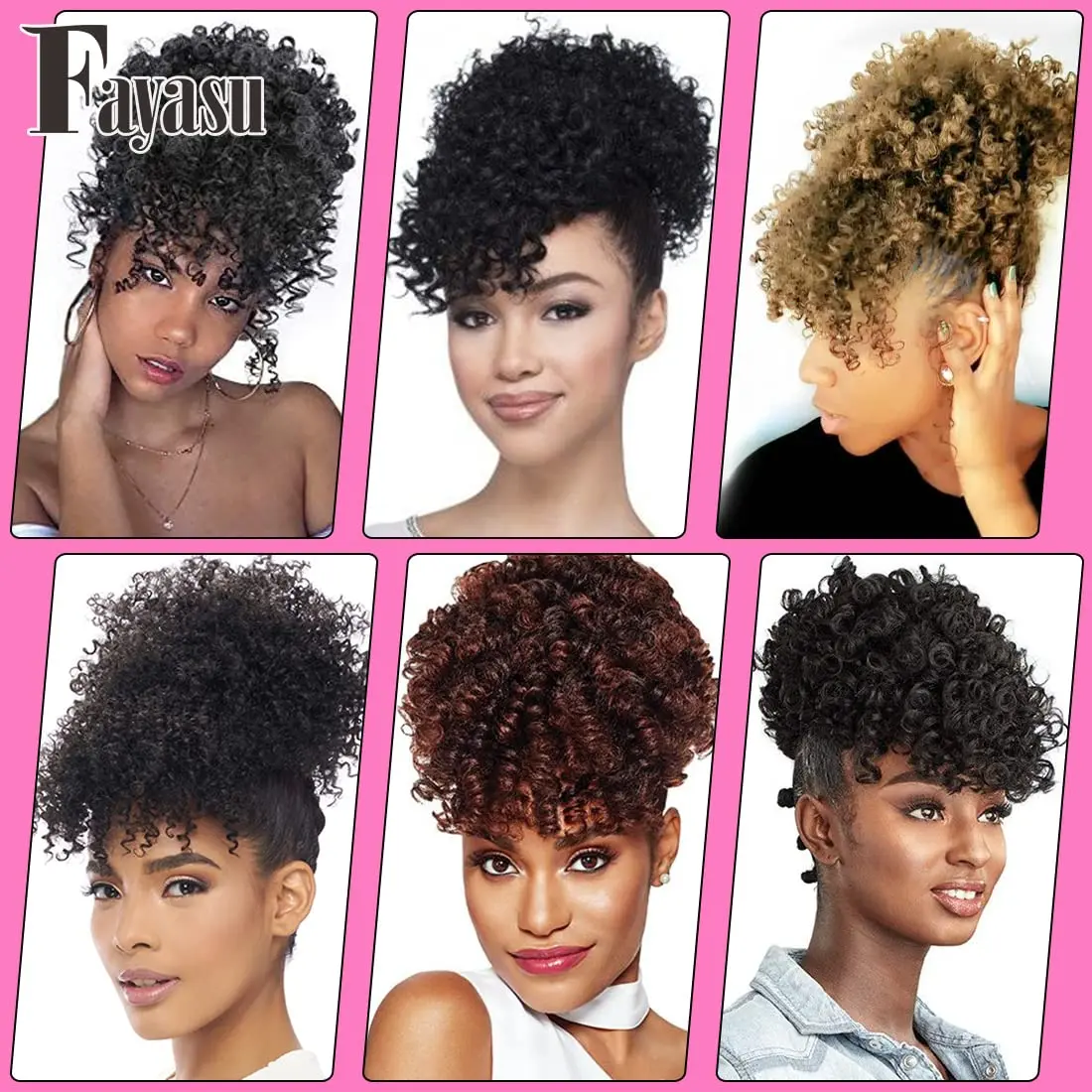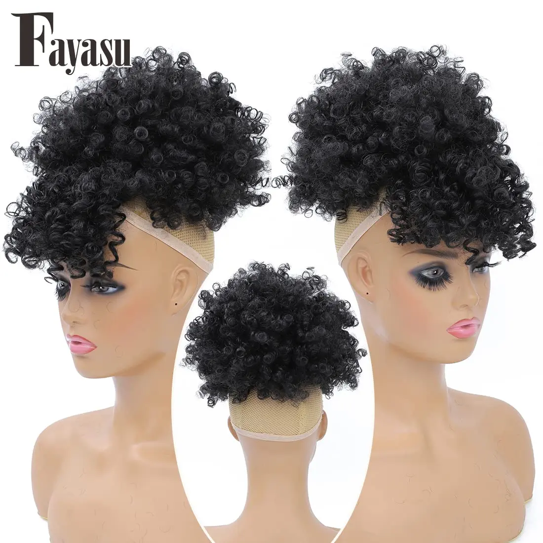 ·Features: Afro Puff Drawstring Ponytail with Bangs