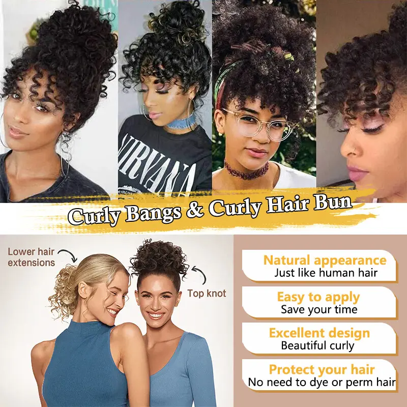 ·Easy to wear: Tie Your Own Hair into a Bun on the Top of Your Head; Put Your Bun into the Drawstring Ponytail, Attach It with Drawstring and Combs; Firm and Adjust the Bangs, If the Bangs are Short, Shake and Pull It Gently; Install Beautiful Headband or Head Scarf, Your Beautiful Pineapple Updo hair has Done! So Easy! No Long Time Preparation!