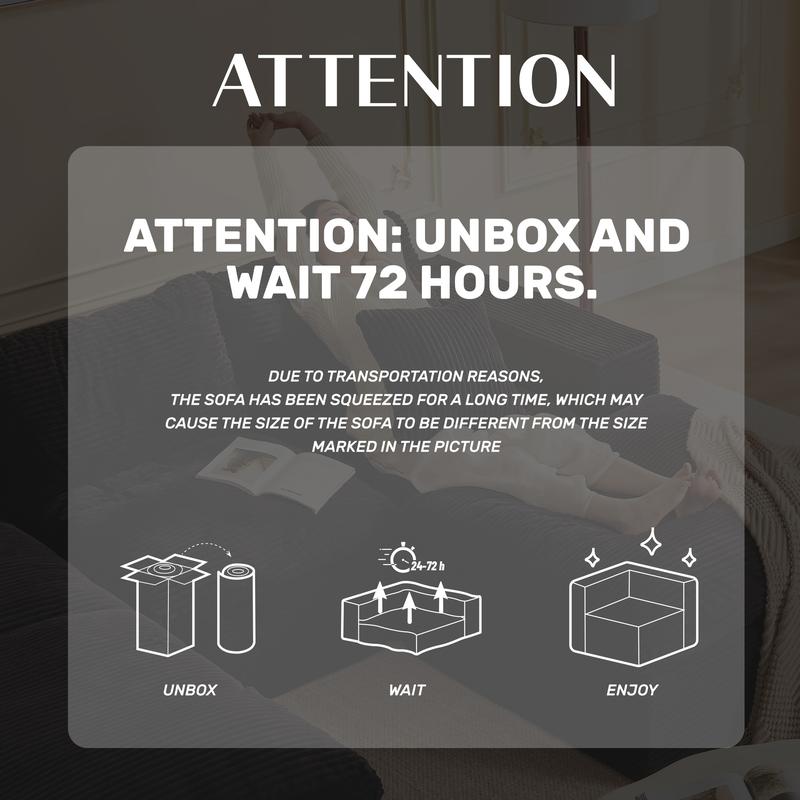 ·NO INSTALLATION REQUIRED: Simply unbox the cushions, place the pieces together, and let them naturally expand for 48–72 hours. No tools or complicated assembly needed — this modular sofa is ready to use with minimal effort