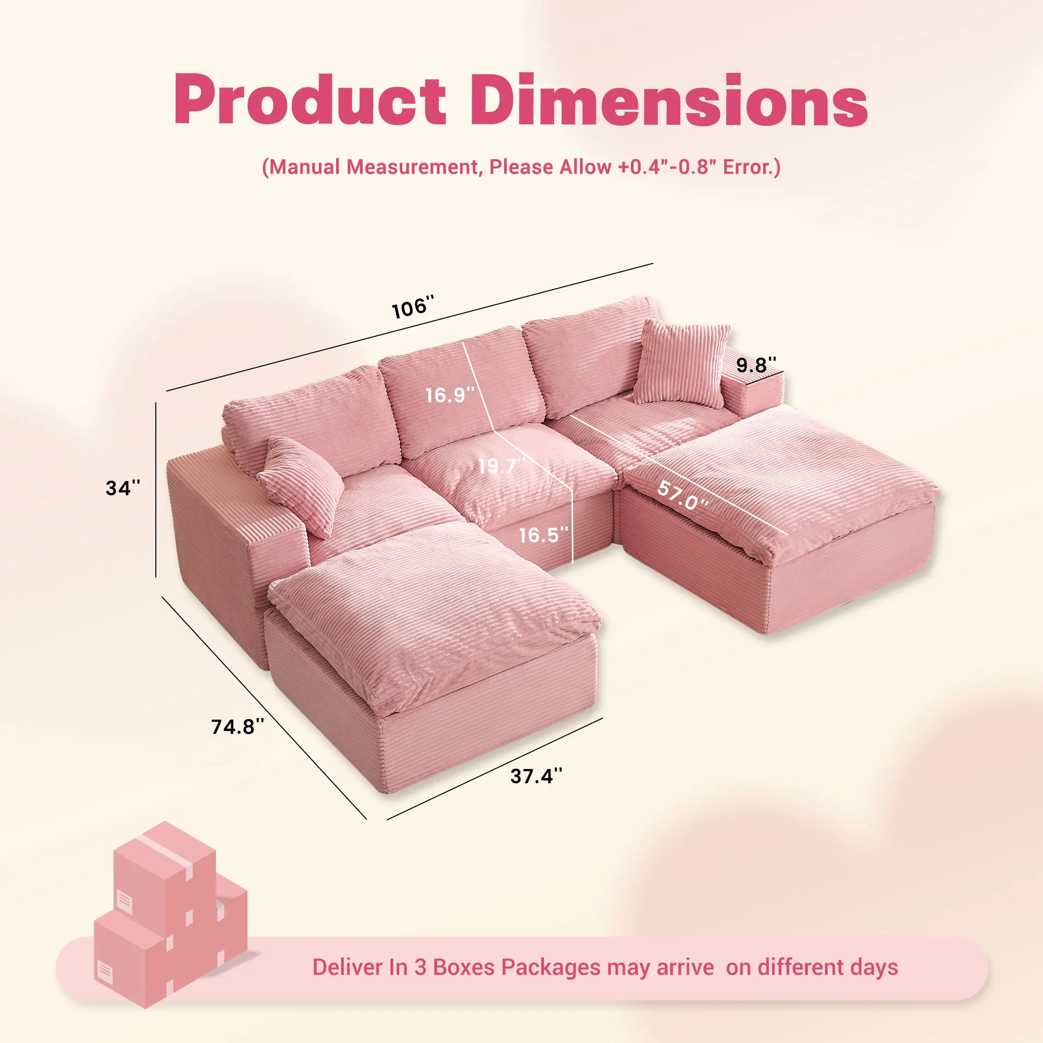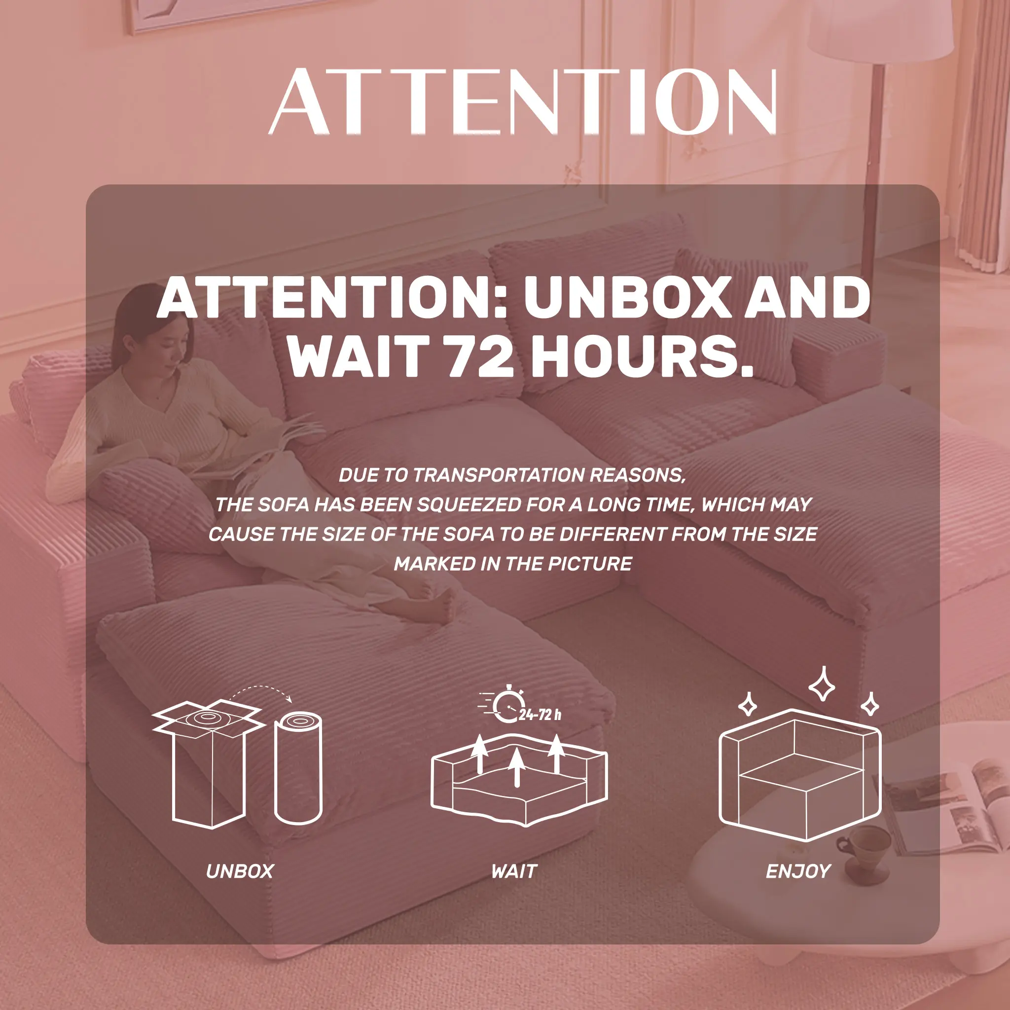 Kind Reminder: This sofa will be shipped in 3 separate packages, which may not arrive at the same time. Please wait patientlyBoneless couch needs some time to fully expand and regain its ideal shape after being compressed. After receiving the product, you can contact our customer service to get a step-by-step rebound (unboxing) video