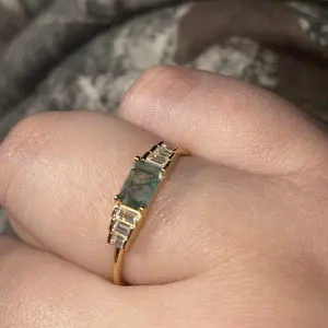 Stunning ring. So dainty & the detail is so nice. The moss agate stone looks very high quality.