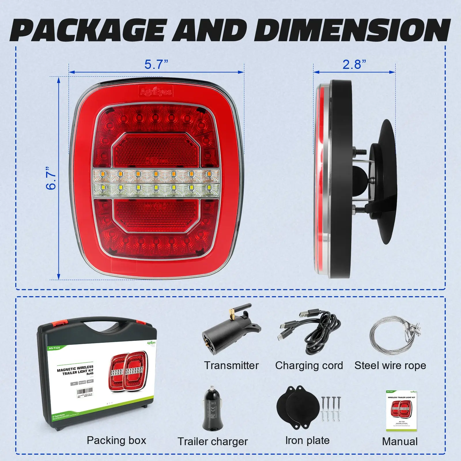 AgriEyes T325 Wireless Magnetic Trailer Light is a larger, heavy-duty trailer light designed for cargo vehicles, utility trailers, tractors, RVs, and work trucks.