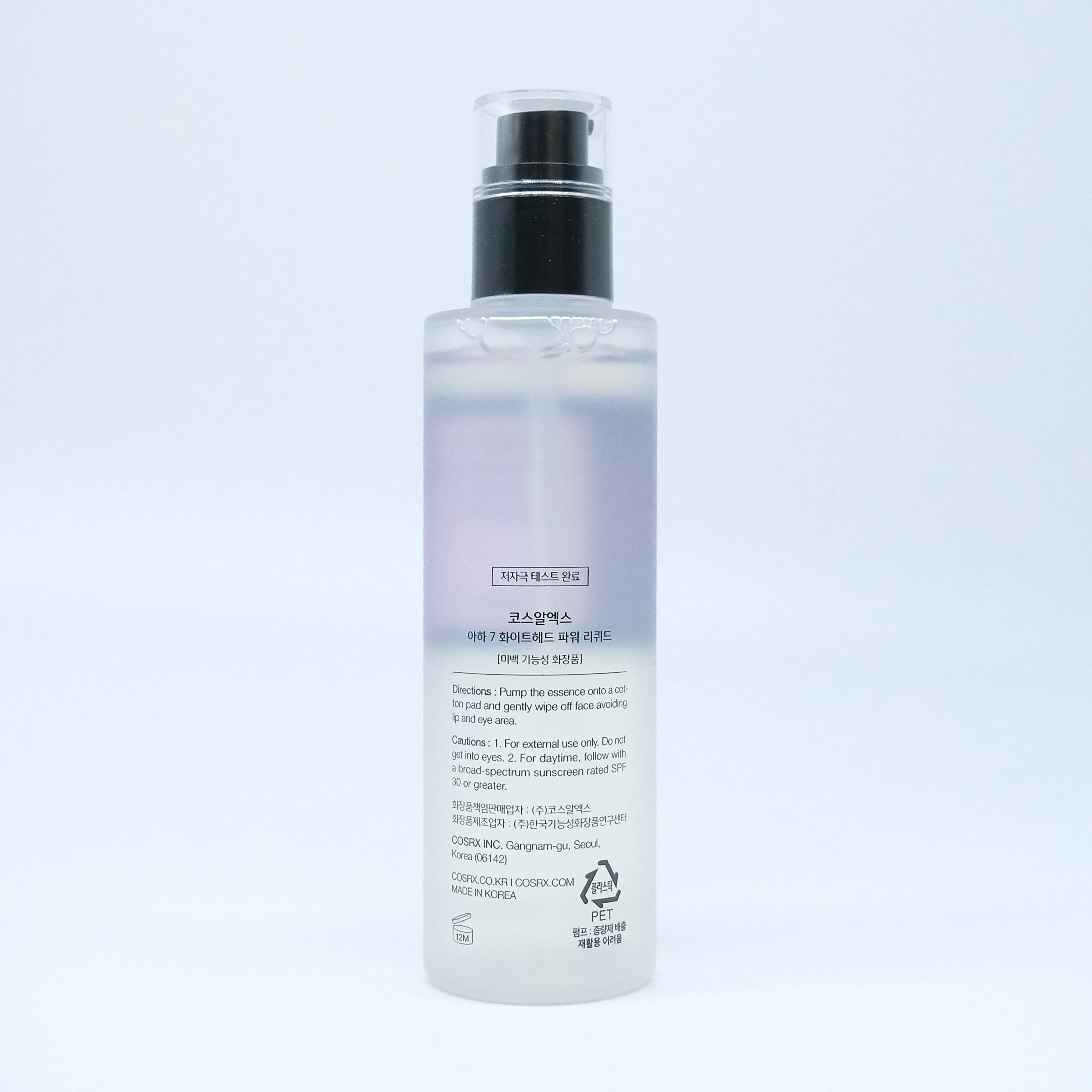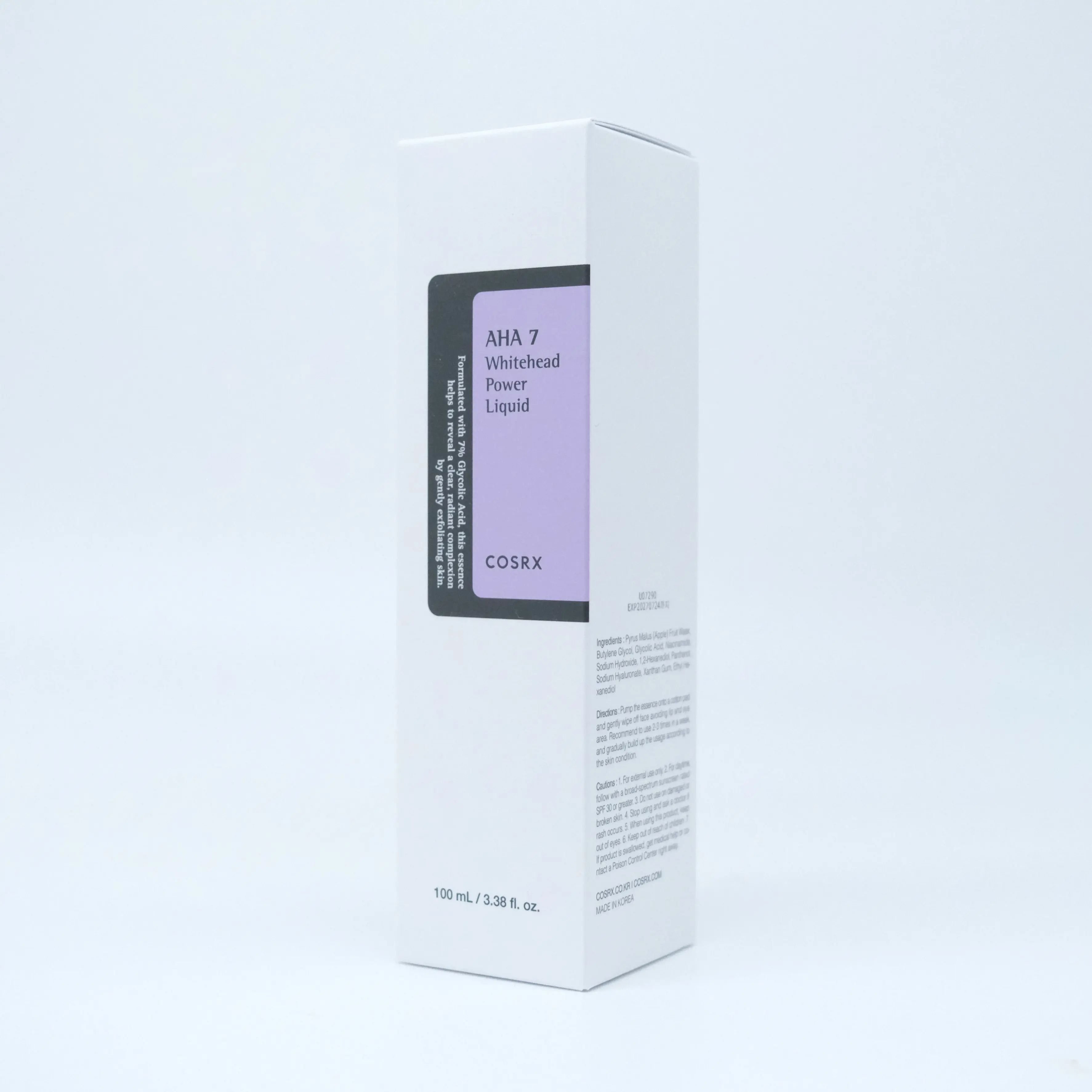 Apply the COSRX AHA 7 Whitehead Power Liquid after cleansing. Use a cotton pad to gently sweep the liquid across the face, avoiding the eye area. Follow with your favorite toner and moisturizer. For best results, use 2-3 times a week and always apply sunscreen during the day when using AHA products.
