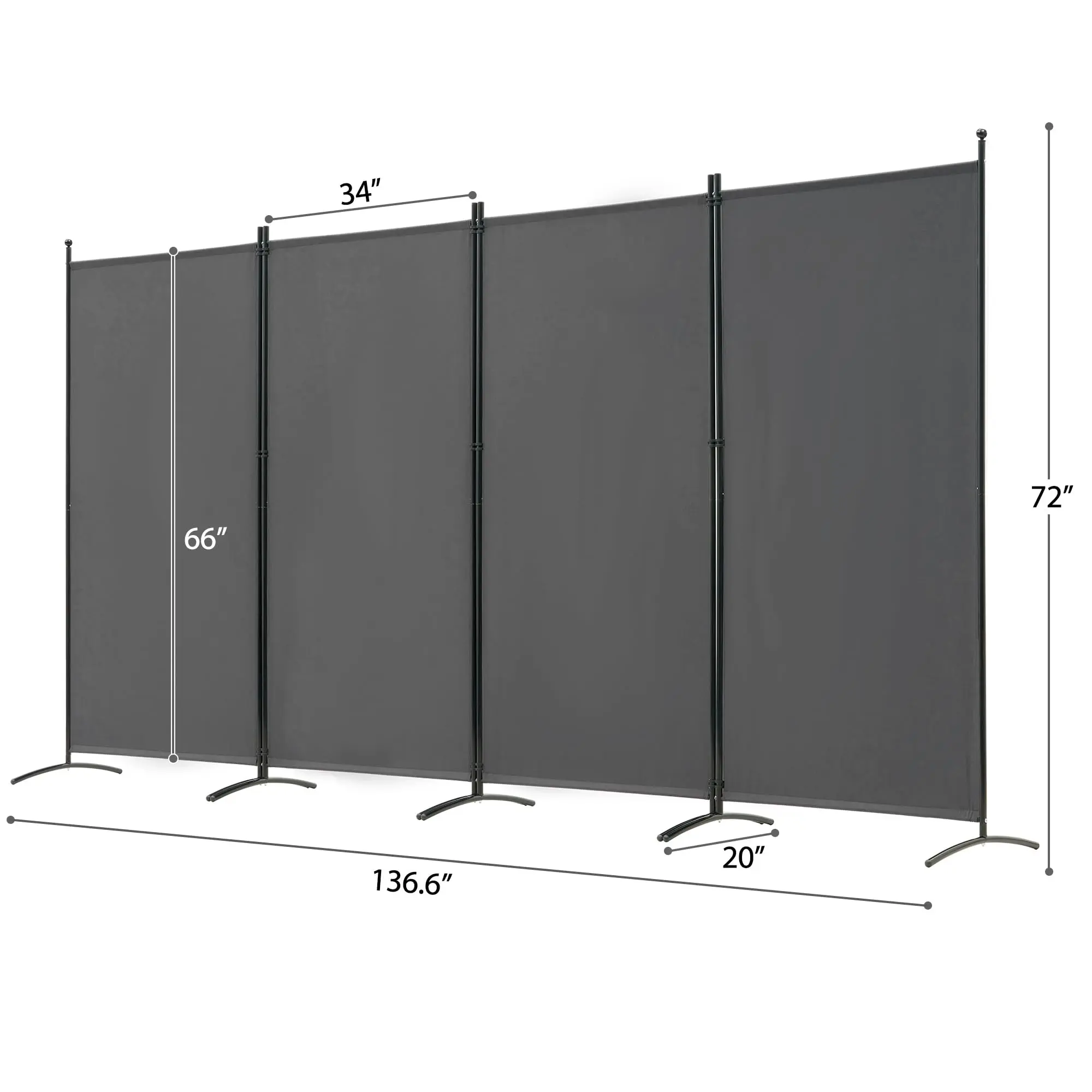 ·Room Divider Dimensions: Our room divider screen is connected by flexible buckles, you can mix and match the panels according to your needs and create your own personal space. Dimensions (4 Panels Max Extend) 136.6" W x 72" H, (Single Panel) 34" W x 72" H.