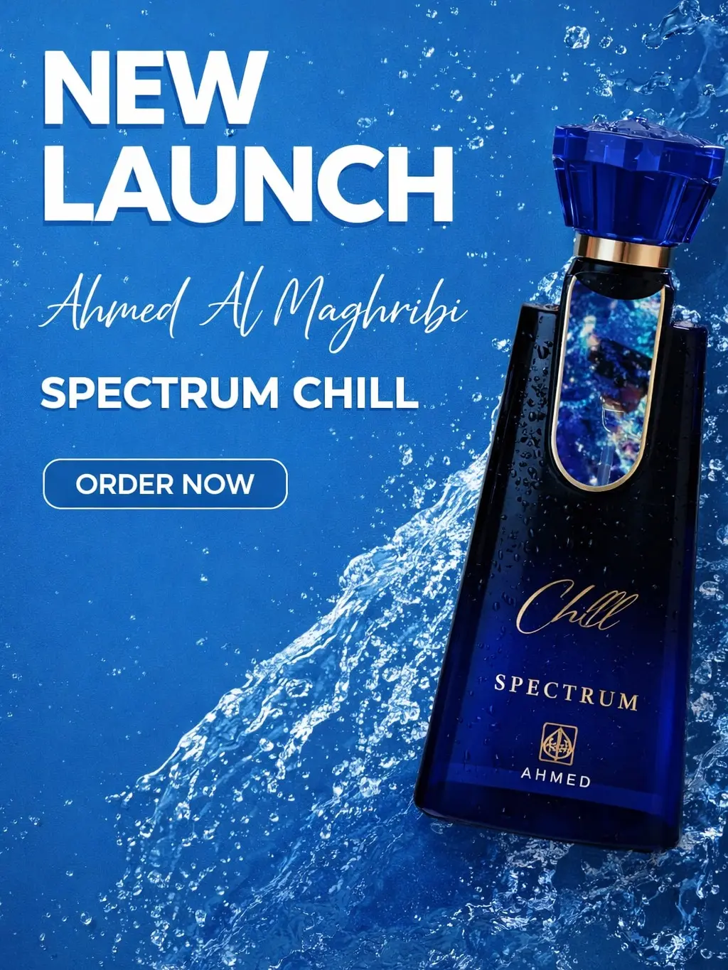 Immerse yourself in the refreshing radiance of Ahmed Al Maghribi Spectrum Chill, an extrait de parfum that masterfully blends citrus, aquatic freshness, and solar-woody accords to create a modern, long-lasting scent experience. This high-concentration Extrait de Parfum is designed for those who appreciate a fragrance that feels clean, vibrant, and effortlessly luxurious in warm climates.