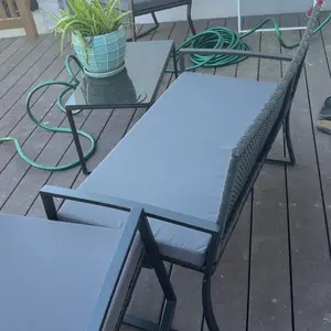 Muy mala experiencia con estos muebles ni siquiera lo tengo afuera el patio lo tengo en una terraza bajo techo y resulta que los balances son ta delicado que te pueden producir fácilmente una caída y el cristal de la mesa no hay manera que se le pegue se le resbala, realmente perdí mi dinero comprando esto