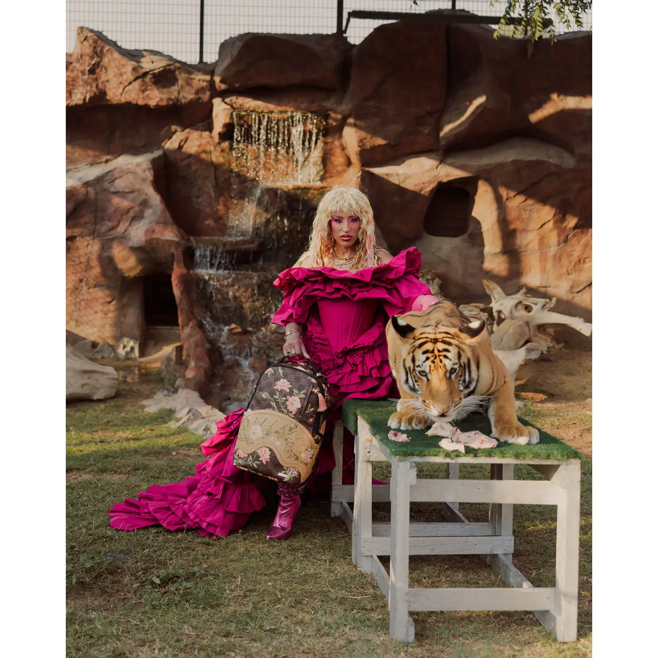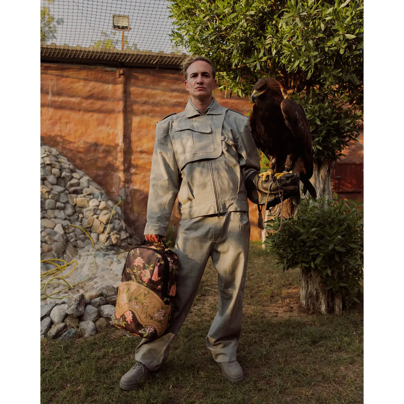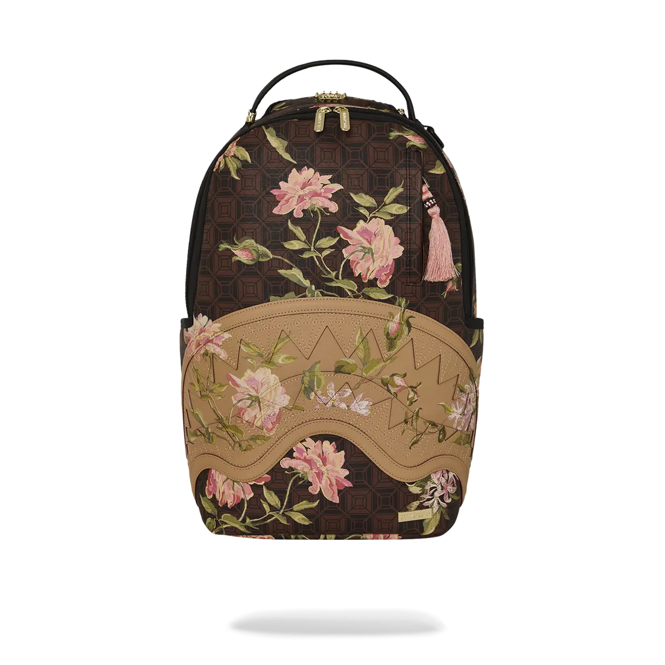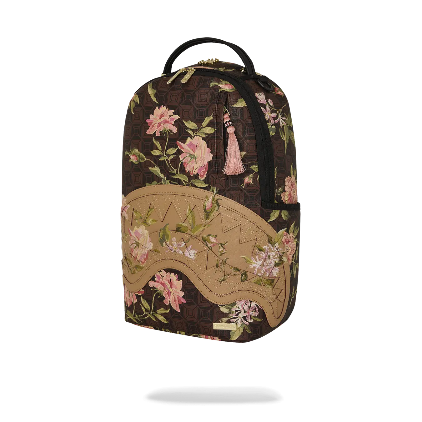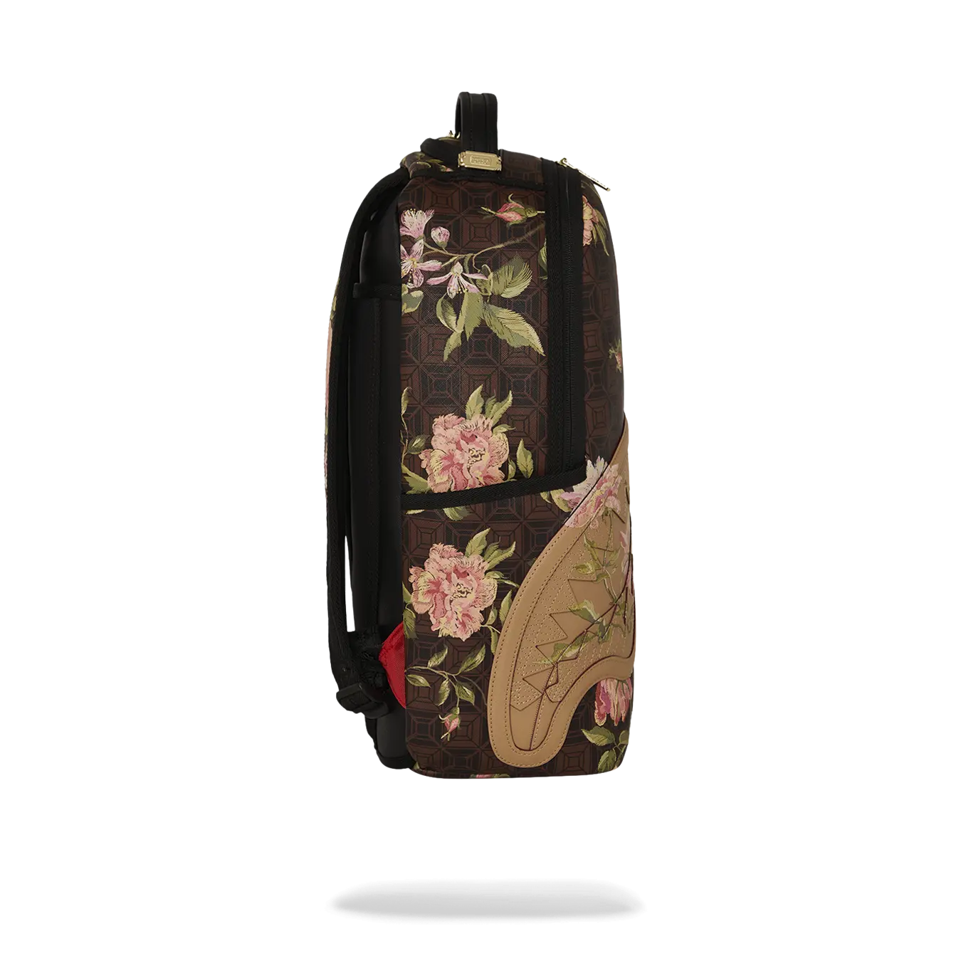 Dimensions: 18" x 6" x 11.5" • Front zipper pocket • Side pockets • Zippered Stash pocket • Separate velour sunglass compartment • Ergonomic mesh back padding • Adjustable Straps for custom sizing • Gold zippers with metal hardware • Metal "Sprayground Authentic" badge • Slide through back sleeve connects to carry-on luggage to free your hands