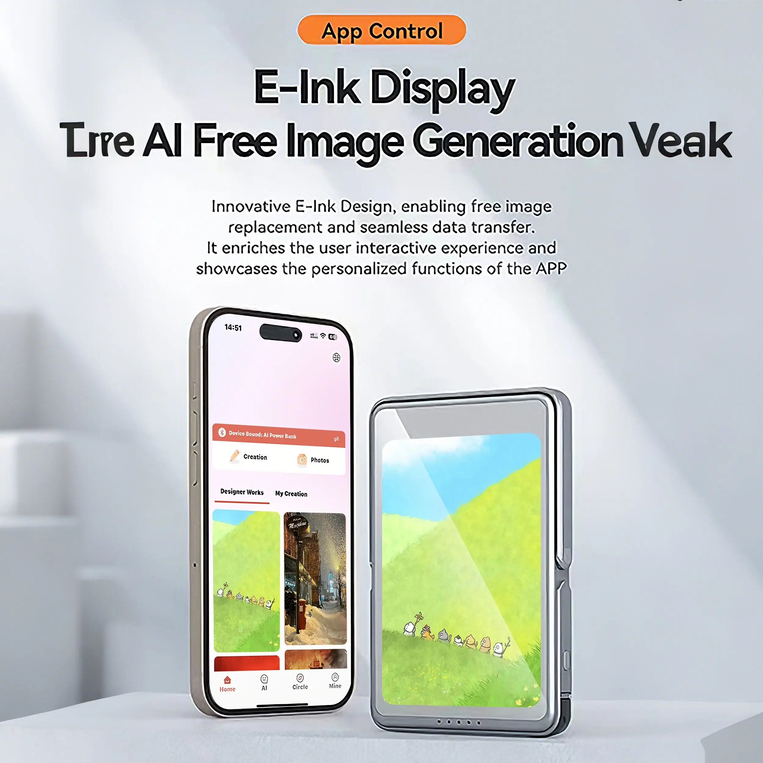 AI E-Ink Power Bank All-in-One Device 5000mAh Free Image Replacement AI-Powered Portable Charger Magnetic charging