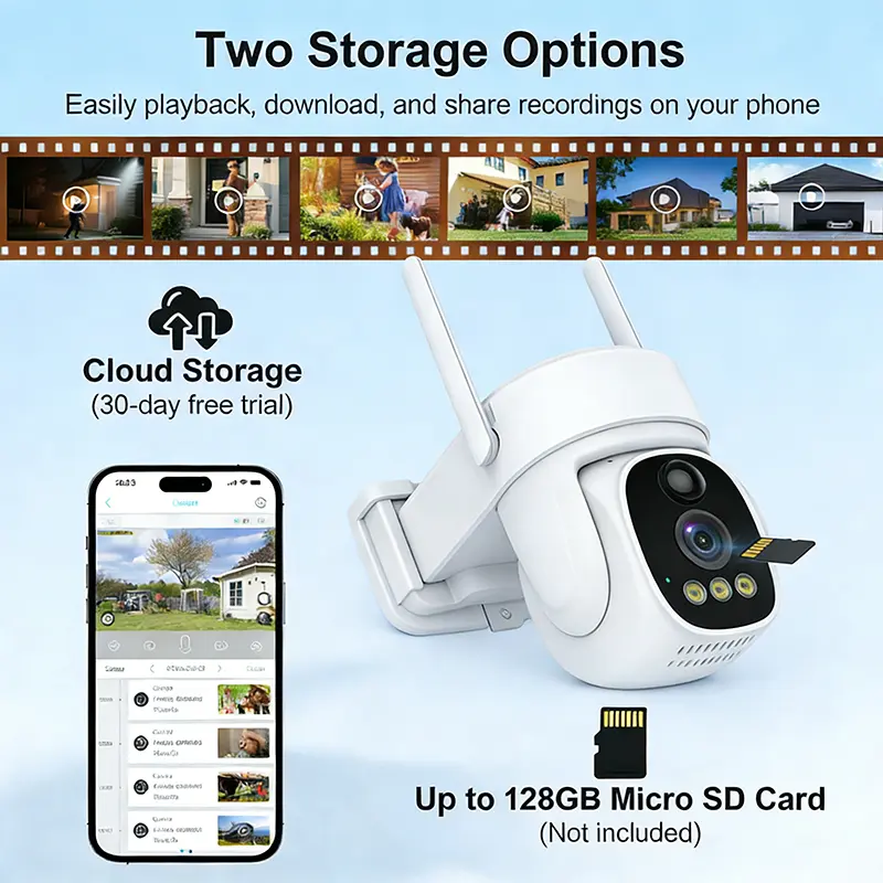 Storage Options: Supports cloud storage and SD card storage.