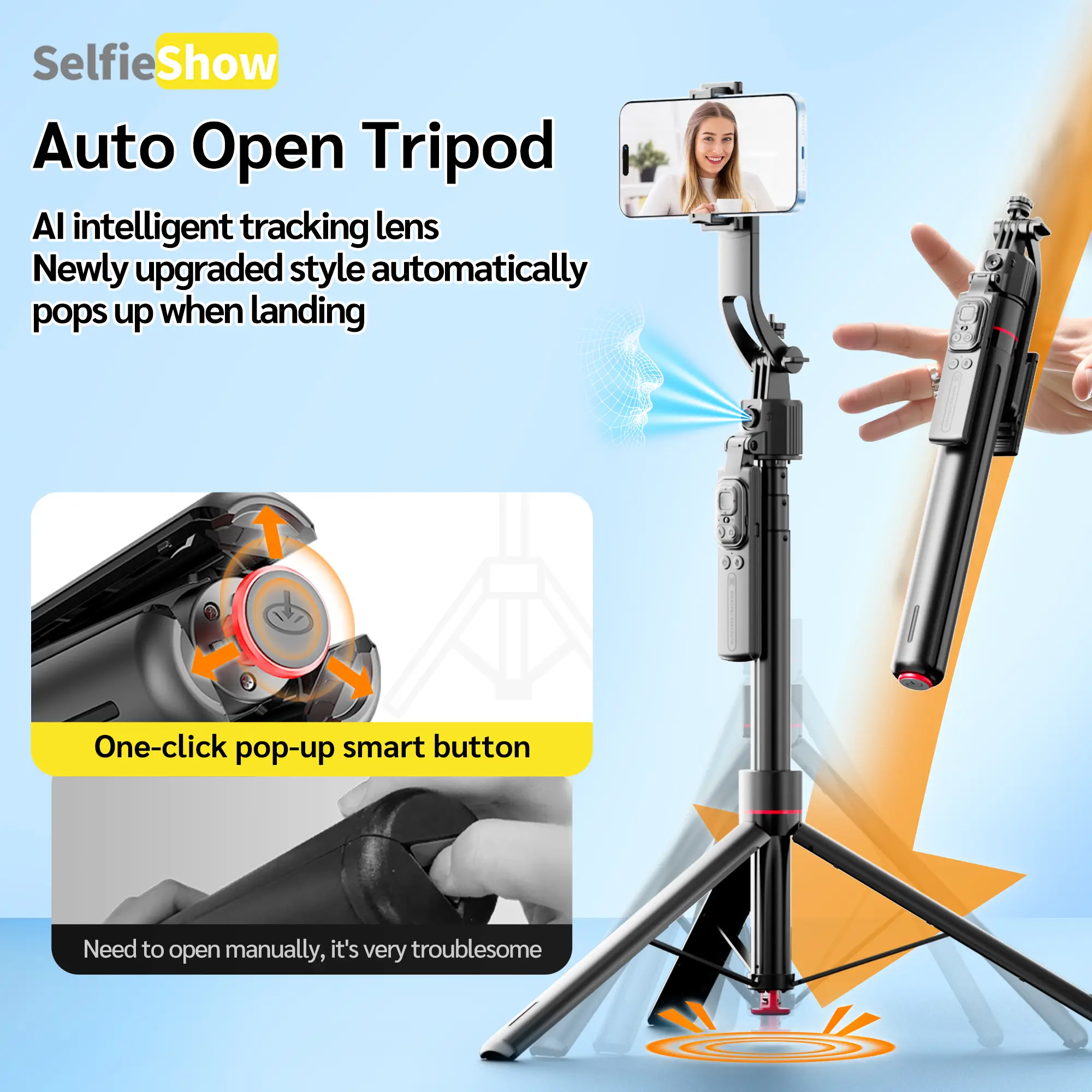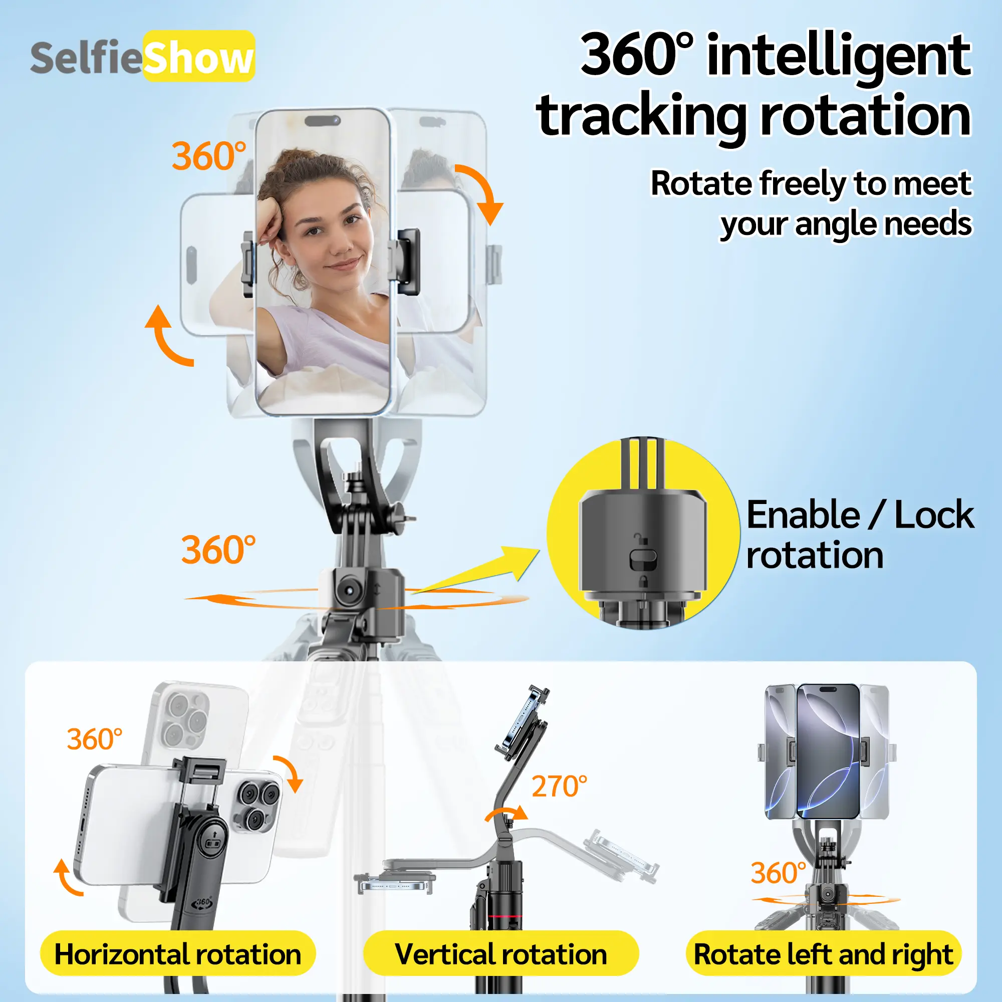 📸 Auto Face Tracking Tripod 360° Rotation