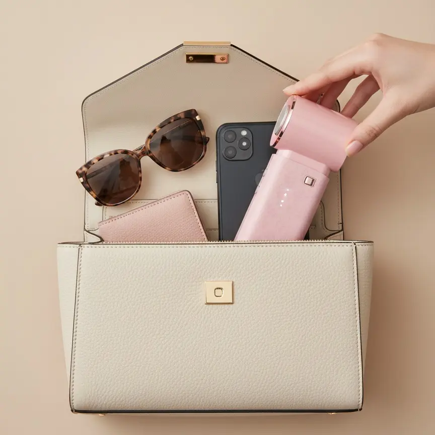 ·The fan includes a safety lock switch to prevent accidental activation while stored in your bag.