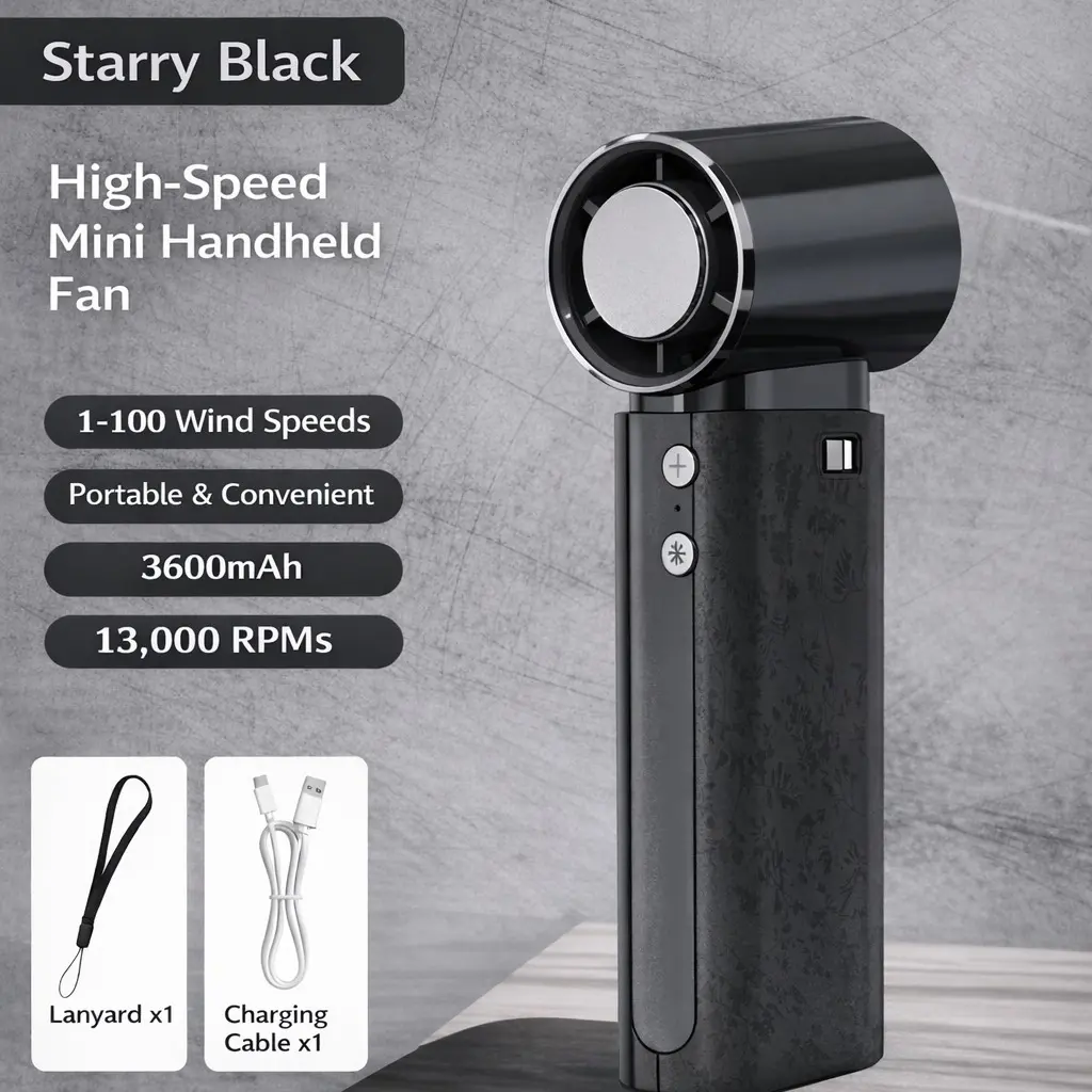 ·This handheld fan is powered by a high-performance energy-efficient motor that generates powerful airflow while consuming minimal energy.