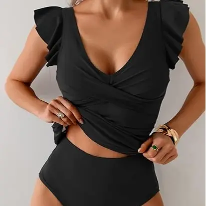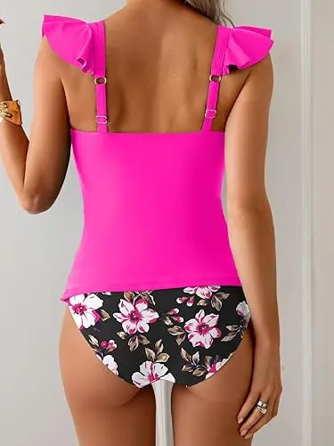 ·Push up two piece swimsuits for women: The removable padded and adjustable straps can fix the tankini tops well, the criss cross front band below the bust give you more support, ruffled cuffs make your arms slimmer