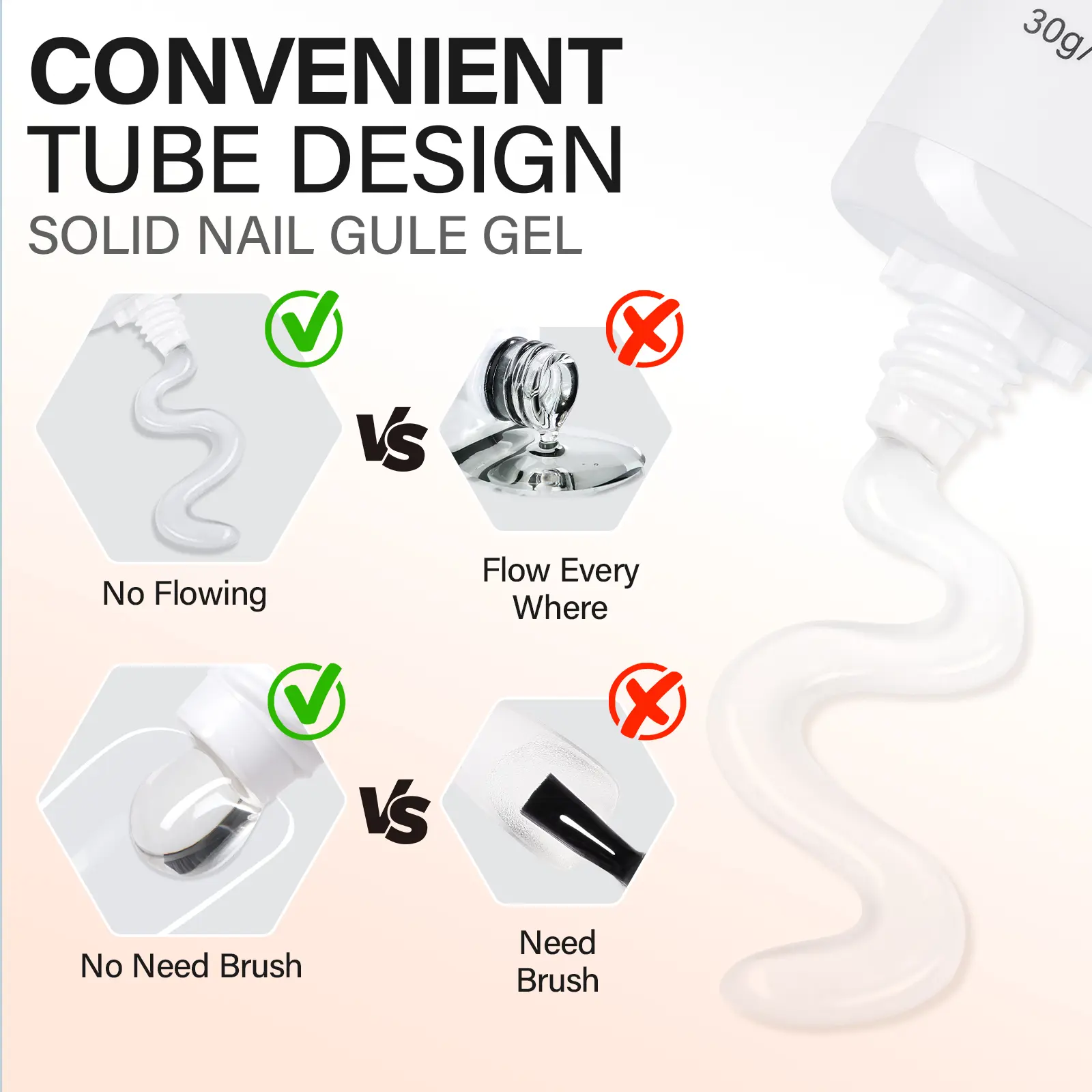 If you use to much it will separate and if you use to little it’s not going to cover your nail, make sure to wipe of cuticles before curing and BUY A UV GLUE REMOVER! I bought the 30g and takes about 2:30min to cure.