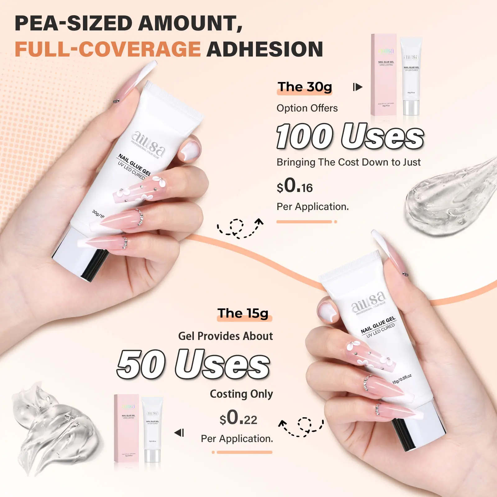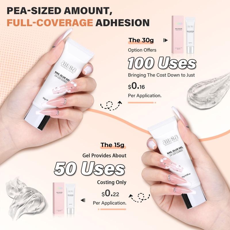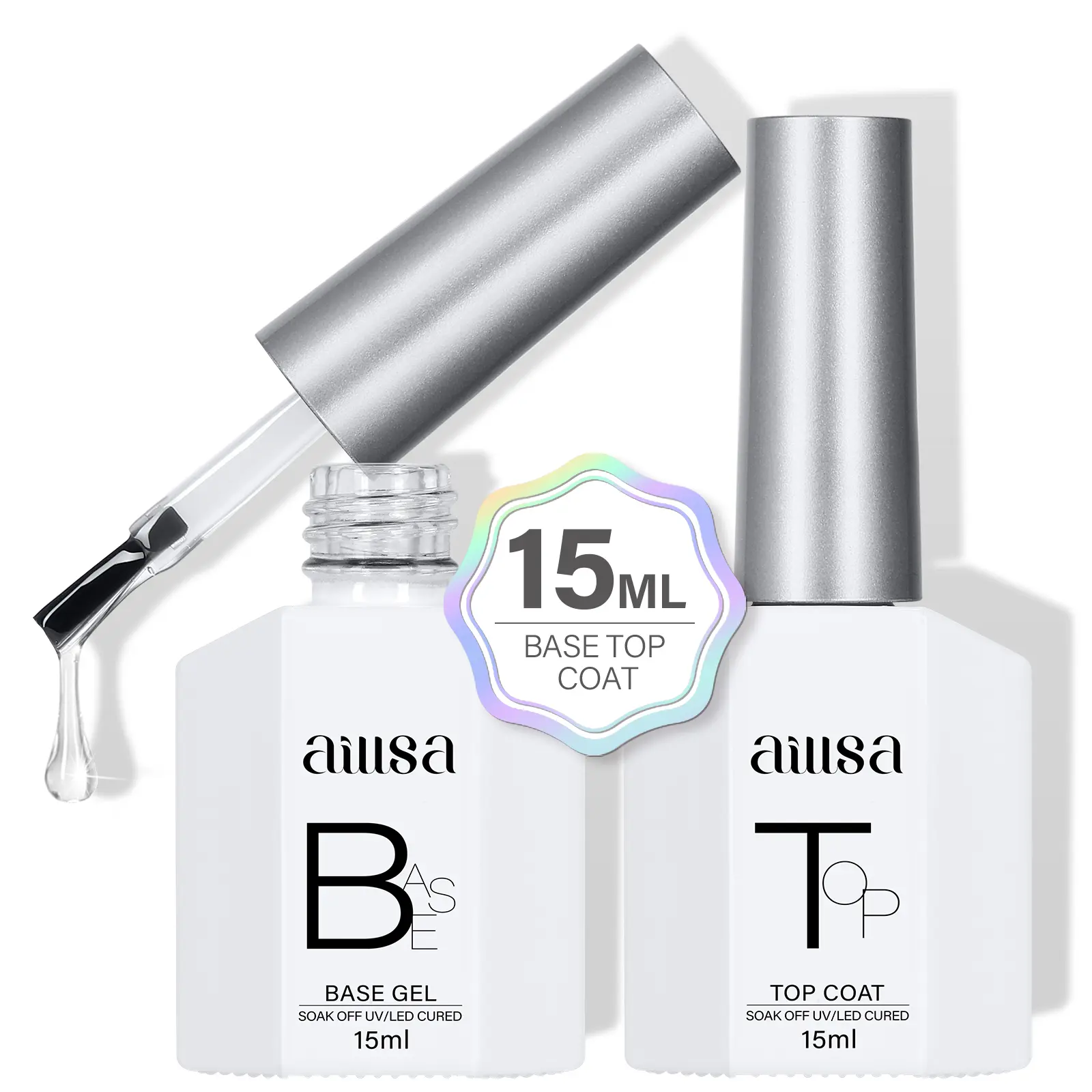 4. AILLSA Gel Top Coat And Base Coat Gel Nail Polish, 2 x 15 ML Base and Top Coat Gel polish UV/LED Soak Off, Gel Base Coat, No Wipe Top Coat for Builder Gel, Gel Polish, for beginer DIY Nail Art at Home, for clear false nail tips and clear press on nails