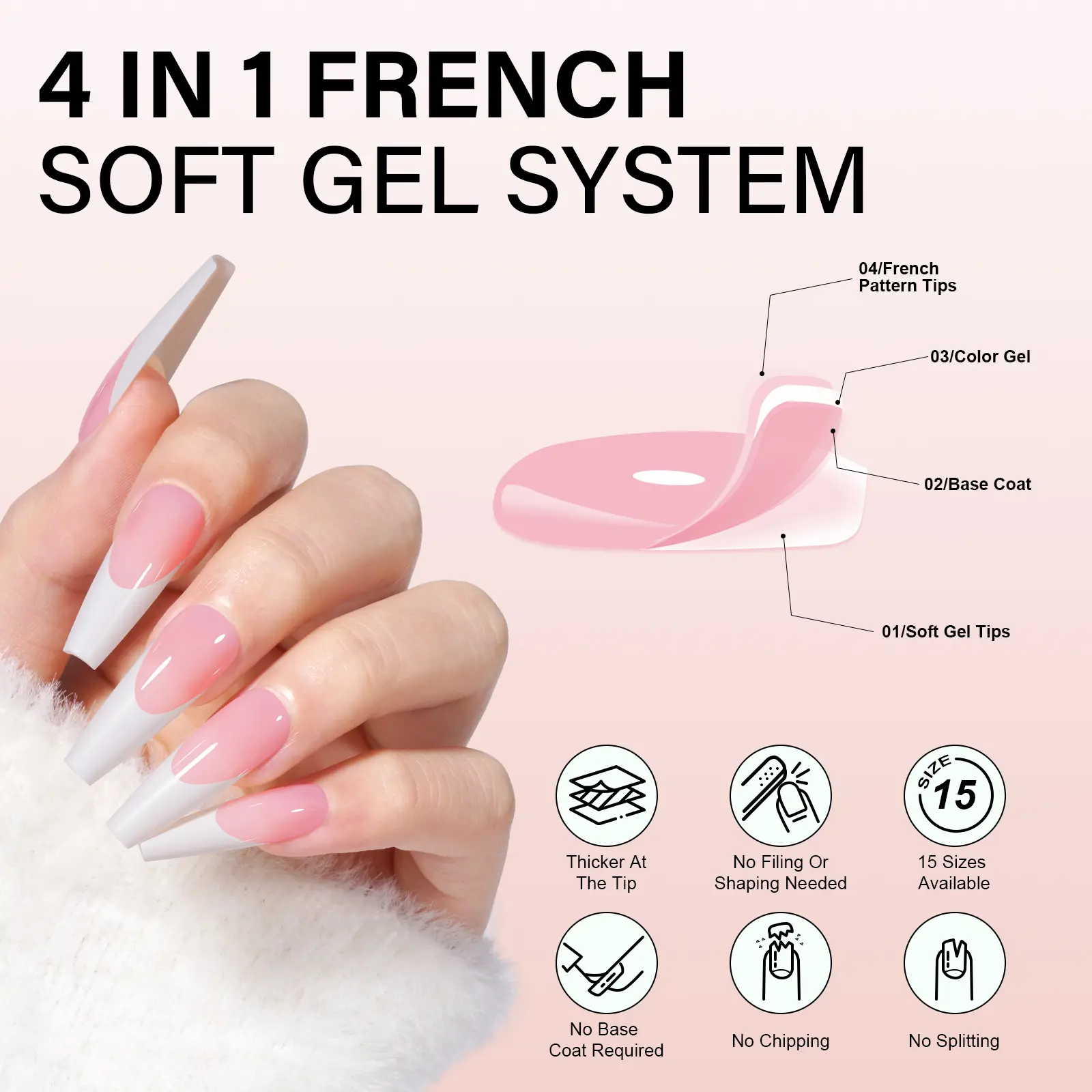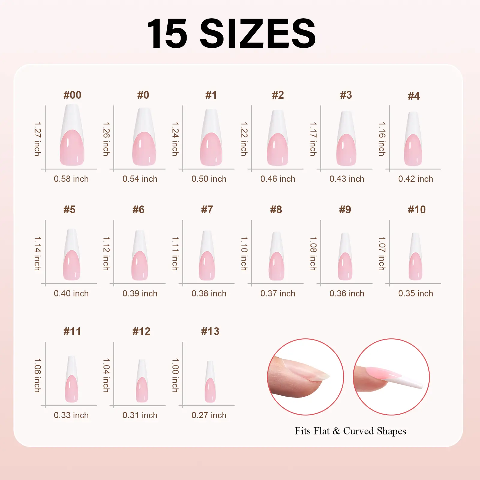 MULTI-SIZE SELECTION: Set comes in 15 different sizes in total 180pcs press-on French tip nails in classic, neutral designs. The fake nail tips provide you with more choices. You can quickly fit the size and widely adapt to different sizes of finger requirements.QUICK AND EASY APPLICATION: Create unique looks with just one builder gel and one top coat (required). Then you can create your unique design in fewer steps