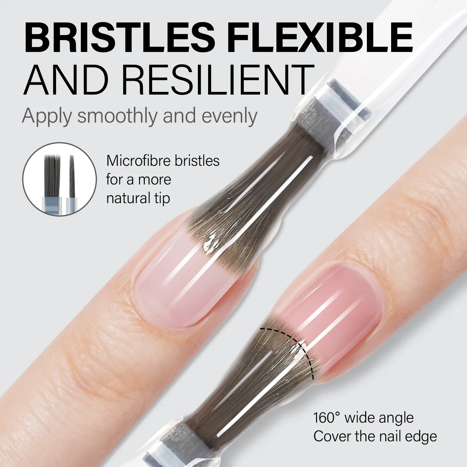 Revolutionary 160° Wide Brush: Upgraded brush design features a wide 160° angle design for easier and more precise application. The wide brush head allows you to cover more nail surface with each stroke, reducing the number of strokes needed and saving time.