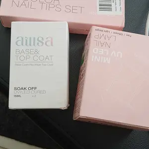 Me encantó este producto,lo único malo que no viene con la goma para pegar las uñas el kit Contiene las uñas,la lámparita con su cable,el top coat y la base,la goma hay que compararla a parte,los colores de uñas están bellos!!!!!!