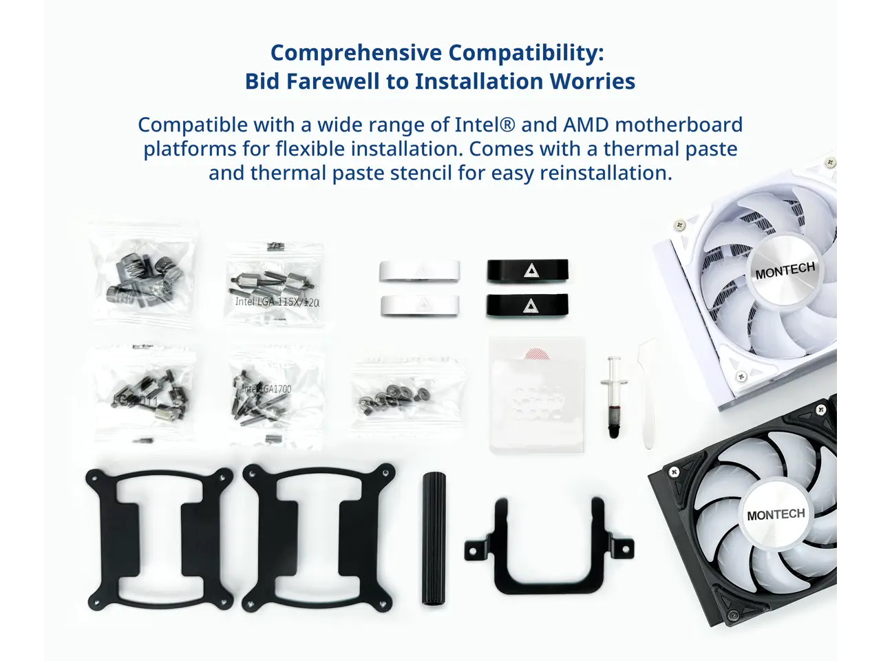 5. MONTECH HyperFlow ARGB 360 - AIO CPU Liquid Cooler, Supports Intel LGA 1851/1700, AMD AM5/AM4, Enhanced 3100RPM Water Pump Design, 3X Metal Pro 12 ARGB Ultimate Cooling Fans - Black